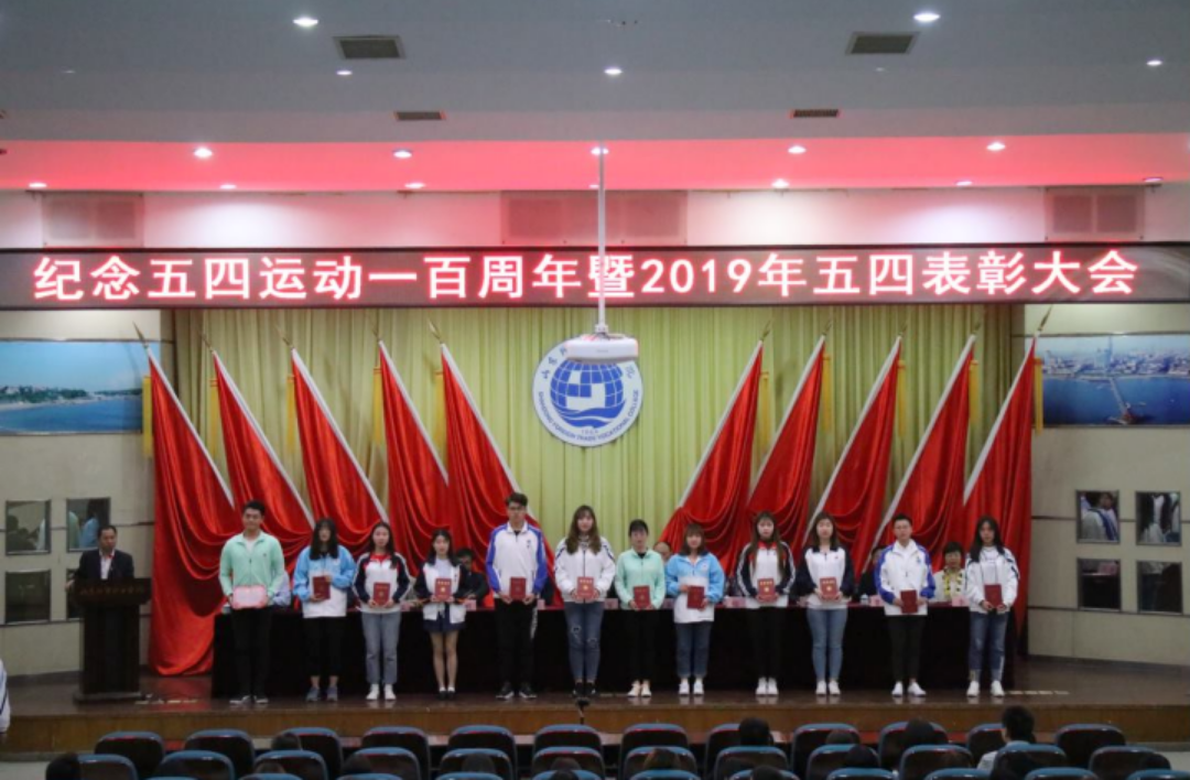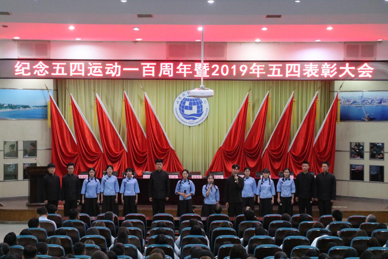 表彰大会开始前,与会领导老师和参会人员一同观看了由伟德团员青年精心准备的诗朗诵《五四赞歌》。随后,大会在庄严的国歌声中正式开始。纪委书记唐长臣宣读《关于伟德国际victor1946官网2019年五四评比表彰的决定》、《关于2019年寒假大学生社会实践活动优秀个人表彰的决定》,授予2017级国际贸易实务6班等36个班集体2018年度“先进团支部”称号,授予财会金融系李玉娇、商务外语系周忠熙等299名同学“优秀团干部”称号,授予经济管理系李红、信息管理系宋钰等569名同学“优秀共青团员”称号,授予国际运输与物流系张慧等216名同学“优秀志愿者”称号,授予国际贸易系车路政等141名同学“社会实践优秀个人”称号。与会领导为获奖先进集体和优秀个人代表颁奖。先进团支部代表财会金融系2017级会计6班金娇、优秀团员代表商务外语系2017级应用韩语班孙艺渲、优秀志愿者代表国际贸易系2017级国际贸易实务4班孙赫等三名同学先后进行发言,表达了珍惜荣誉、努力奋斗、再创辉煌的信心和决心,并倡议全院团员青年牢记使命、开拓进取,奋勇争先。