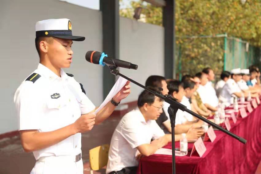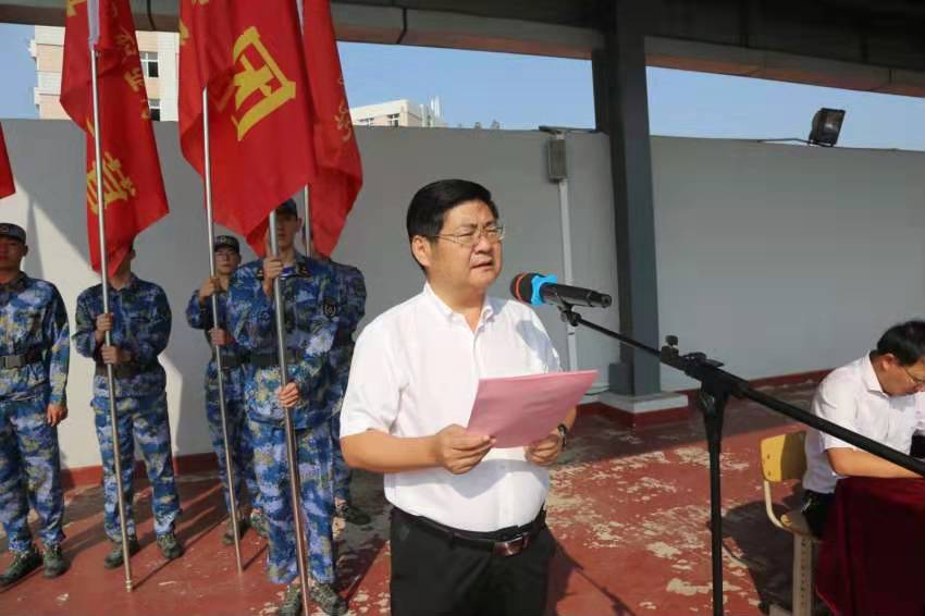 大会在庄严的国歌声中拉开帷幕。程巍首先宣布军训团组织建制,唐长臣向军训团团长授旗,军训团团长向各营授旗。授旗仪式结束后,新生代表王嘉彬同学进行了发言。随后,承训部队代表发言,他向参训同学表示热烈祝贺,要求承训教官们严格按照学校要求,科学施训,认真负责,以高标准、严要求对待军训。