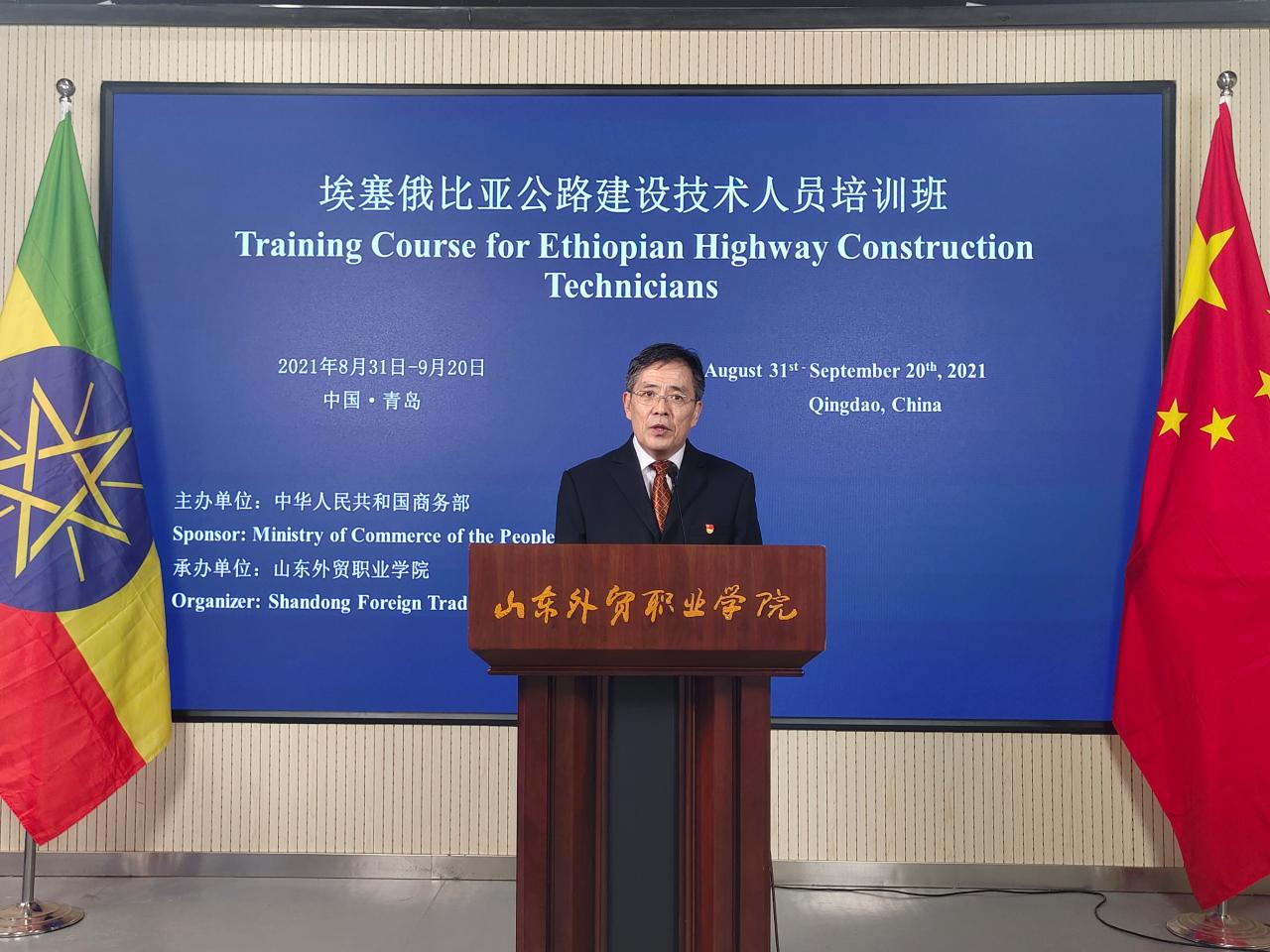 周厚才在致辞中介绍了学院的发展历程、援外培训、校友企业等情况。他表示,在培训班举办期间,学院愿搭建起中国与埃塞俄比亚合作交流的平台,为山东省与埃塞俄比亚开展道路工程建设、经贸合作和教育交流发挥积极的促进作用。