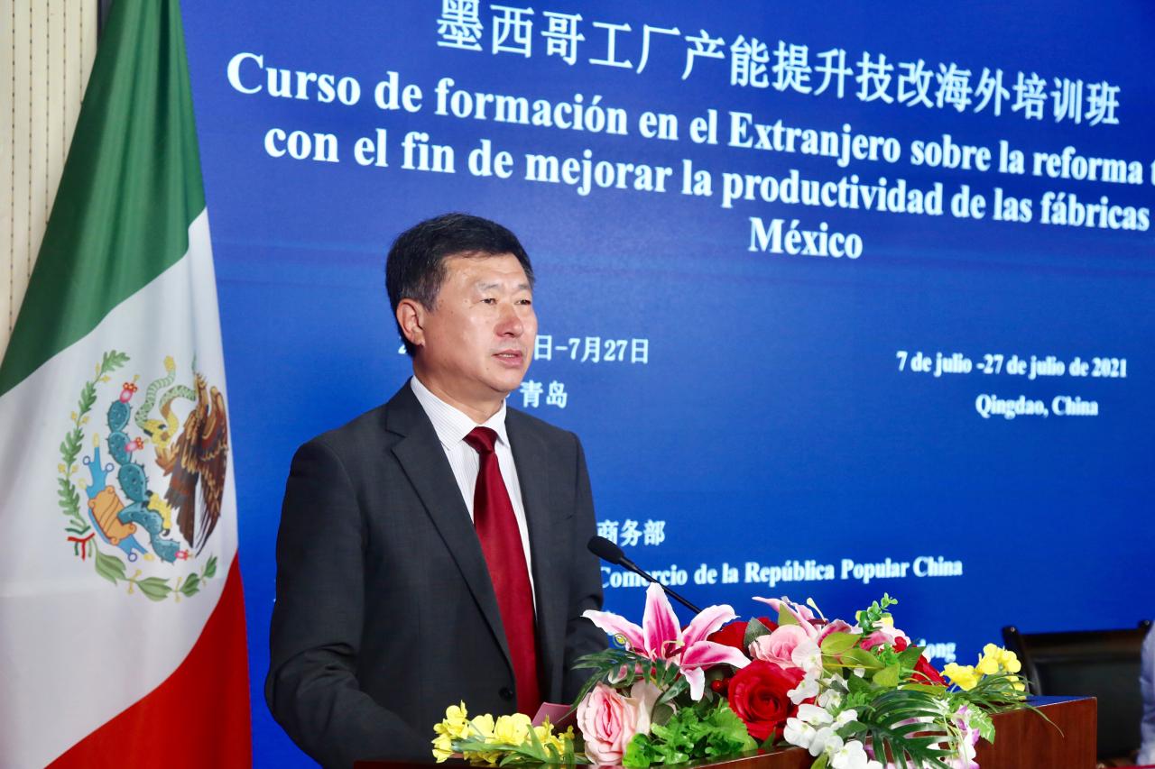 7月7日上午,墨西哥工厂产能提升技改海外培训班在伟德李沧校区举行线上开班典礼。我国驻墨西哥使馆经商处公参邹传明、伟德院长刁建东出席开班仪式并致辞,山东省商务厅外经处处长张国亮出席开班仪式,墨西哥全国高等技术学院副院长弗朗西斯科·普拉塔、墨西哥全国高等技术学院Comitan校区校长莉莉安娜·帕特里夏·莫雷诺、墨西哥全国高等技术学院Ecatepec校区推广部主任玛丽亚·罗萨里奥参加开班仪式并致辞。开班仪式由伟德国际官员研修学院院长王保红主持。