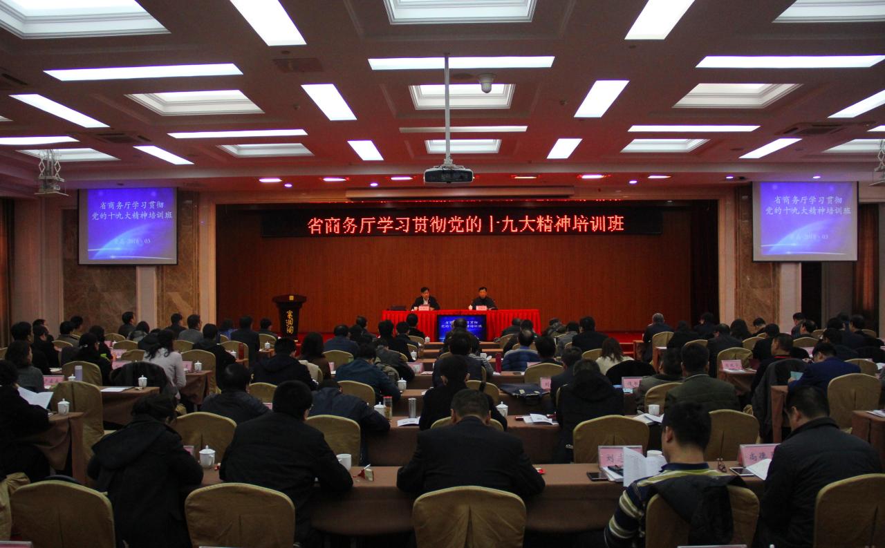 省商务厅党组把学习宣传贯彻党的十九大精神作为当前和今后一段时期最重要的政治任务,开展系列学习宣传贯彻活动。党组书记、厅长佘春明对培训提出明确要求,指出要在学深学透学到位上下功夫。党组成员、副厅长任海涛同志出席开班式并讲话。他指出,加强学习培训是提高政治站位、牢固树立“四个意识”的必然要求,是贯彻落实省委省政府决策部署、推动商务领域新旧动能转换的迫切任务,是推进基层党组织建设、提升党建工作水平的客观需要,是建设高素质专业化干部队伍的有效途径。深入学习习近平新时代中国特色社会主义思想,要深刻领会坚定的信仰信念和政治立场,深刻领会鲜明人民立场和真挚为民情怀,深刻领会强烈历史担当和求真务实作风,深刻领会勇于创新精神和科学方法论。