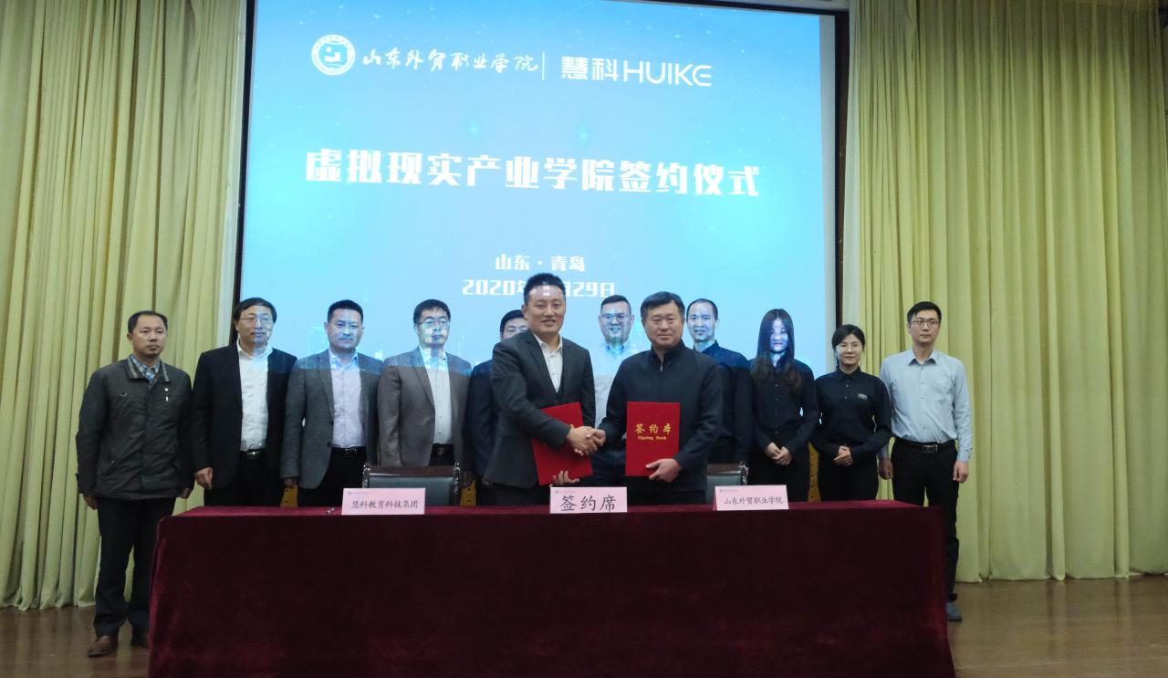 刁建东与岳喜伟分别致辞。刁建东表示,学院适应青岛“虚拟现实产业之都”建设的需要,与慧科集团合作共建虚拟现实产业学院,旨在校企“双元”培养虚拟现实高素质技术技能人才,探索混合所有制办学模式,为促进区域产业快速发展和职业教育创新发展发挥示范引领作用。岳喜伟表示,慧科集团将与学院一起不断完善人才培养体系,把企业真实项目融入人才培养过程,培养产业急需的虚拟现实人才。
