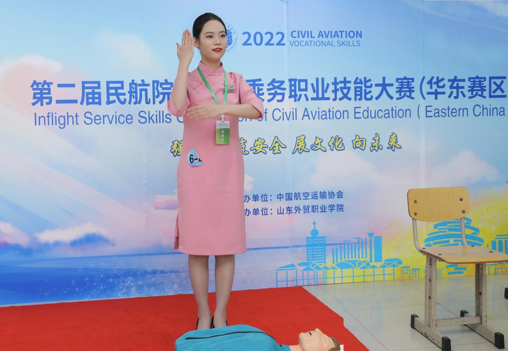 6月27-28日,在全国民航职业教育教学指导委员会指导下,由中国航空运输协会主办、伟德承办的第二届全国院校民航空中乘务专业技能大赛华东赛区复赛落下帷幕。中国航空运输协会副秘书长朱耀春、特聘专家阎开对本次比赛进行全程指导。来自华东赛区6省1市的12所院校代表队60名选手齐聚青岛同台竞技,切磋技艺。经过两天的激烈比拼,大赛产生了团体的1个一等奖、2个二等奖、4个三等奖、5个优秀奖和个人的6个单项奖。伟德国际victor1946官网荣获本次比赛一等奖,将与无锡城市职业技术学院、浙江育英职业技术学院共同代表华东赛区参加全国总决赛。