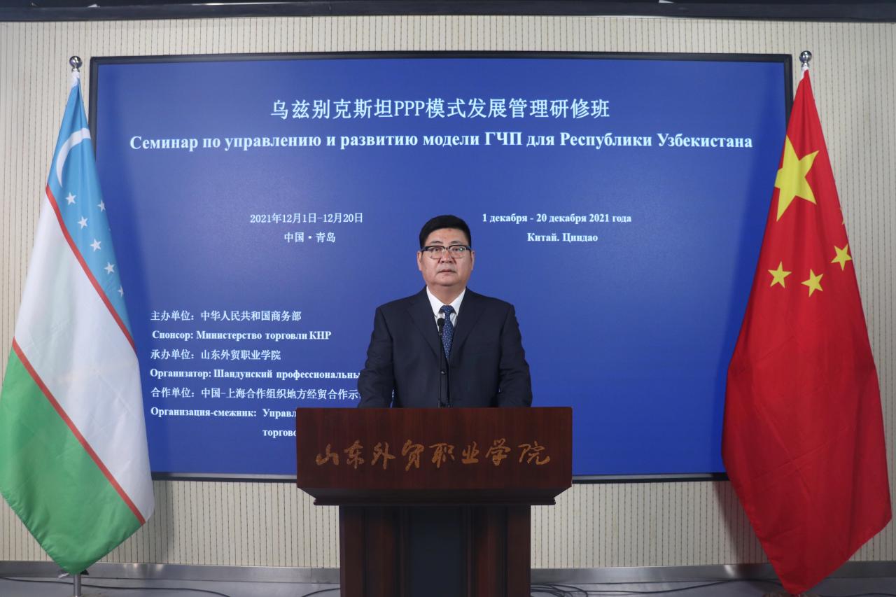 高成在致辞中简要介绍了山东省的基本情况,并对学院的办学历史、校友资源、援外培训情况以及本期研修班的培训安排等进行了介绍。他表示,学院将充分利用国内高校的师资和平台资源,与学员分享中国公私合营模式管理经验,促进我省与乌兹别克斯坦开展PPP管理经验交流,进而在经贸、教育等多领域开展更加深入的合作。