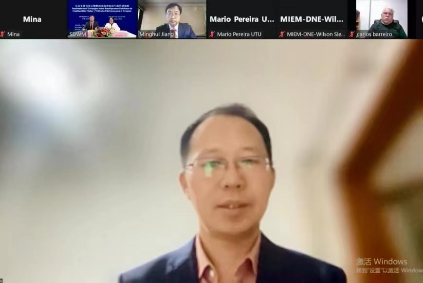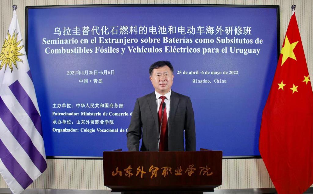 姜铭辉在致辞中指出,研修项目旨在落实中国和乌拉圭两国元首达成的重要共识,为乌专业领域培养人才。希望通过本次培训,推进乌在新能源、电动车领域的创新发展,促进中乌双方在电动车领域的贸易和产能合作,为中乌新能源合作贡献力量。