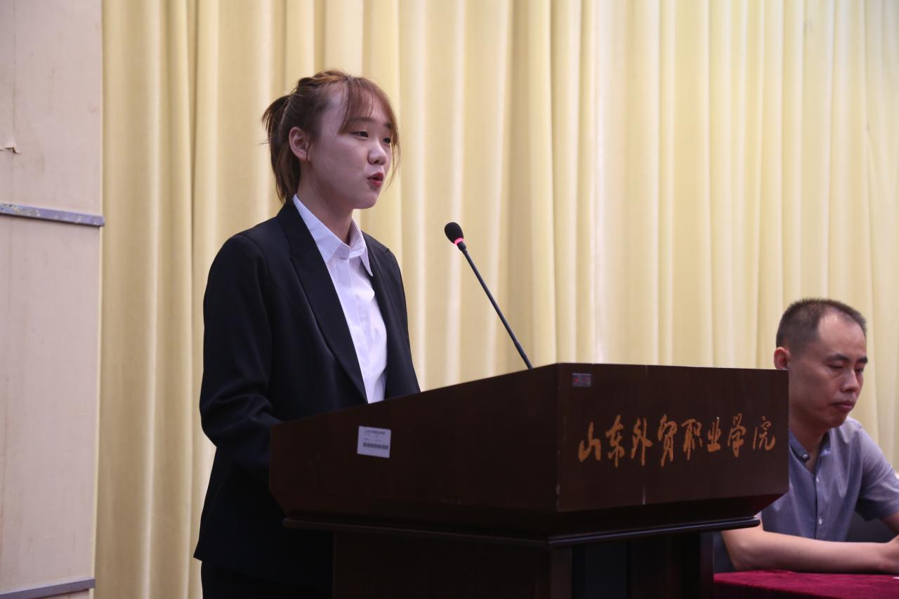 学生代表跨境电商系2019级电子商务专业1班胡雪苹,优秀教师代表财会金融系郭红梅,特邀校友代表2001届青大财会班毕业生、青岛今鹏翔投资有限公司董事长刘翔分别发言。