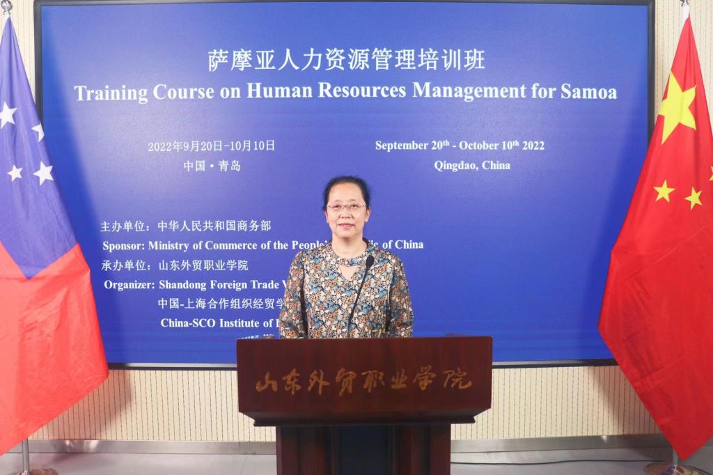程巍在致辞中概述了中国及山东省人力资源行业发展现状,并对学院的办学历史、校友资源、援外培训情况及本期培训班的安排进行了介绍。她表示,人力资源作为社会生产必要的先决条件,对促进社会经济发展具有重要意义。学院将充分利用国内高校的师资和平台资源,与学员分享中国在人力资源管理方面的有益经验,为我省与萨摩亚在教育、经贸、人力资源等领域的合作搭建平台。