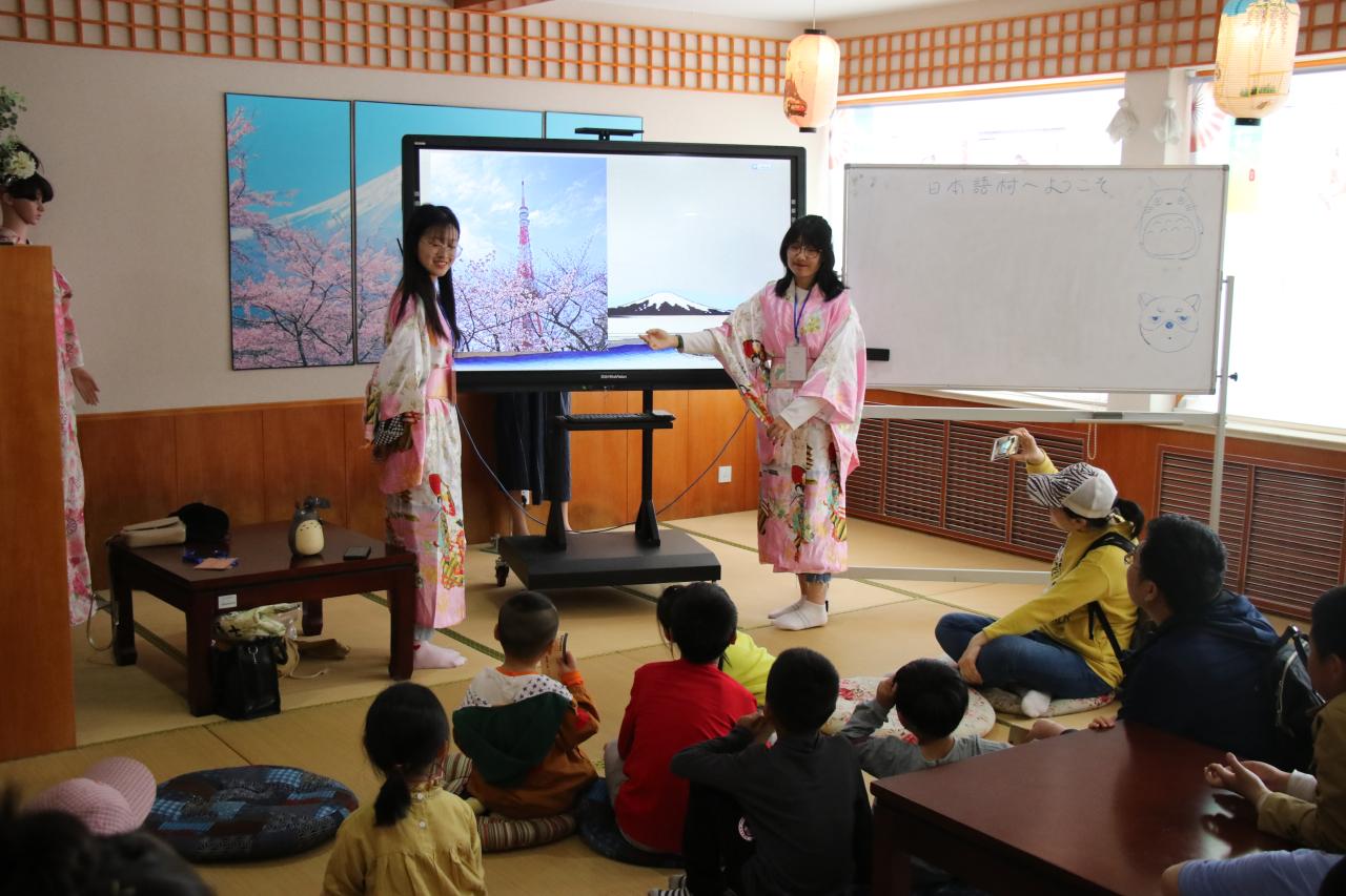 本次活动开设了“教你识民航”民航体验课程、“带你看世界”特色校园环境参观、外语村外国特色文化体验之旅等环节。在民航实训基地中,参与者在志愿者的带领下,详细了解到如何办理安检和行李托运的方法以及需要注意的事项、体验登机过程和模拟客舱、学习专业的民航逃生知识、欣赏空乘专业技能表演和各类航空器模型、聆听飞机发展史和飞机飞行原理等科普讲解。在特色校园环境参观体验活动中,活动参加者跟随志愿者的脚步,参观游览微缩景观和外语村特色村落,了解到了外国特色建筑的相关背景故事和各个国家的风俗特点。除此之外,参与者在外语村还欣赏到了中国传统茶艺表演、日韩特色舞蹈表演和点钞表演,体验了英语绘本课程,参与了现场绘画和英语歌曲试唱,观看了外国电影,参观了咖啡的制作过程并对成品进行了品尝。