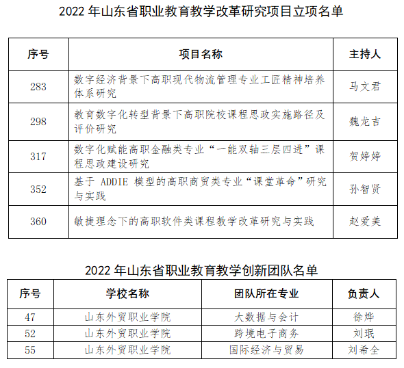 近日,山东省教育厅网站公布了2022年现代职业教育质量提升计划部分项目评审认定结果,伟德再获佳绩。《数字经济背景下高职现代物流管理专业工匠精神培养体系研究》《教育数字化转型背景下高职院校课程思政实施路径及评价研究》等5项课题立项为省级职业教育教学改革研究项目,“大数据与会计”“跨境电子商务”“国际经济与贸易”3个专业团队入选省级职业教育教学创新团队。