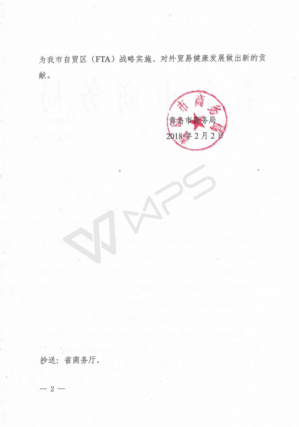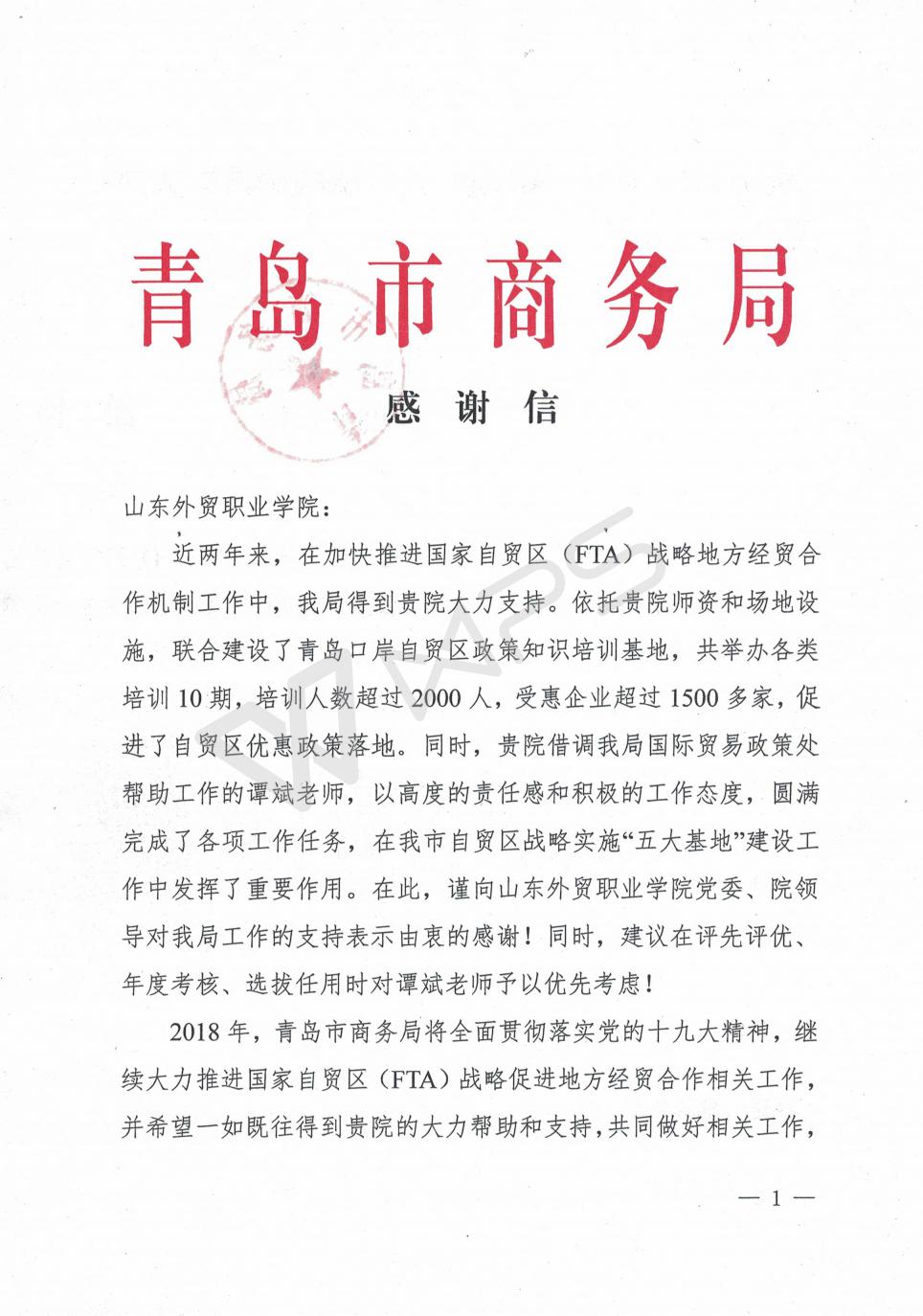 近日,青岛市商务局发来感谢信,感谢伟德在青岛市加快推进国家自贸区(FTA)战略地方经贸合作机制和实施自贸区“五大基地”建设工作中所做出的贡献。