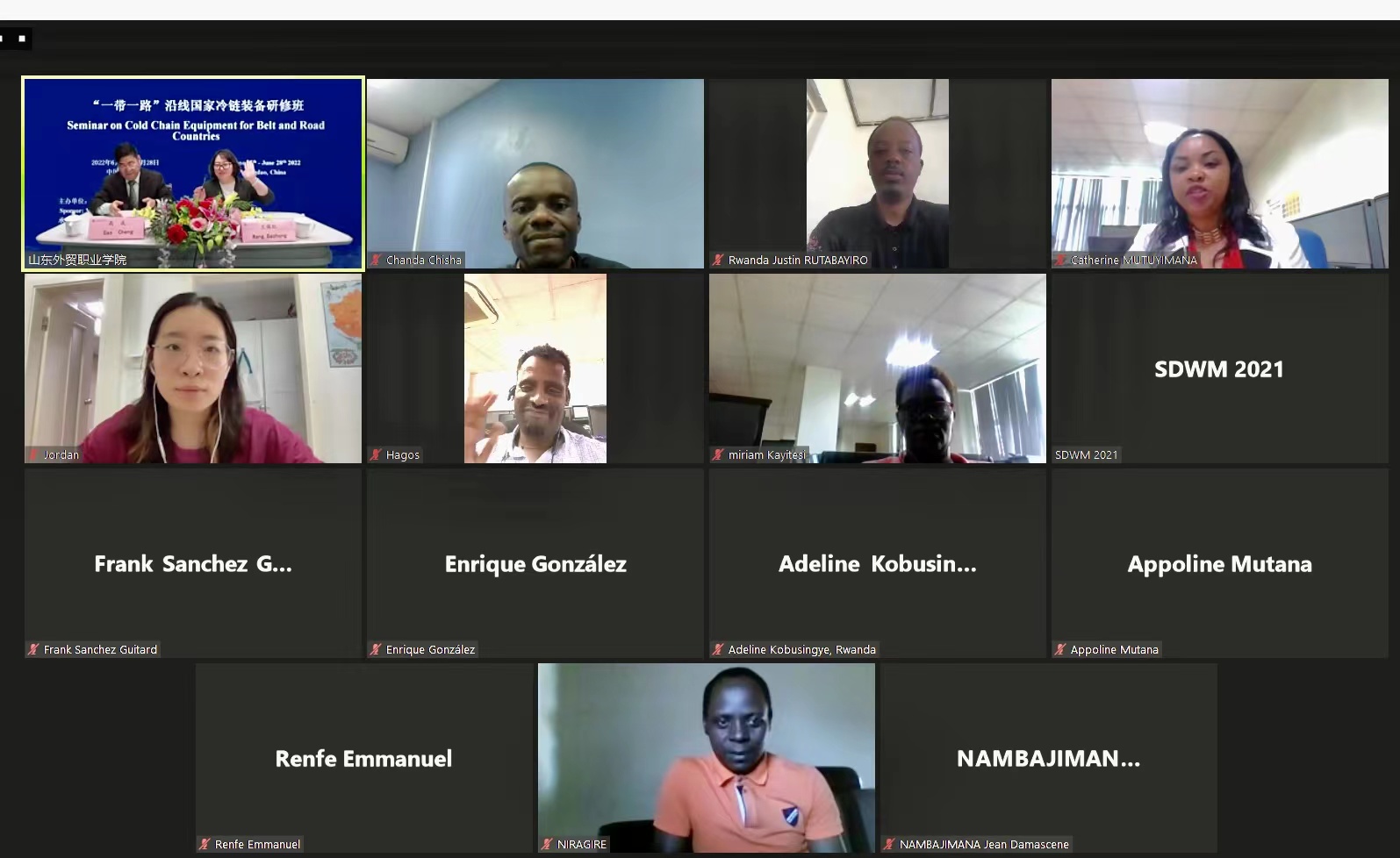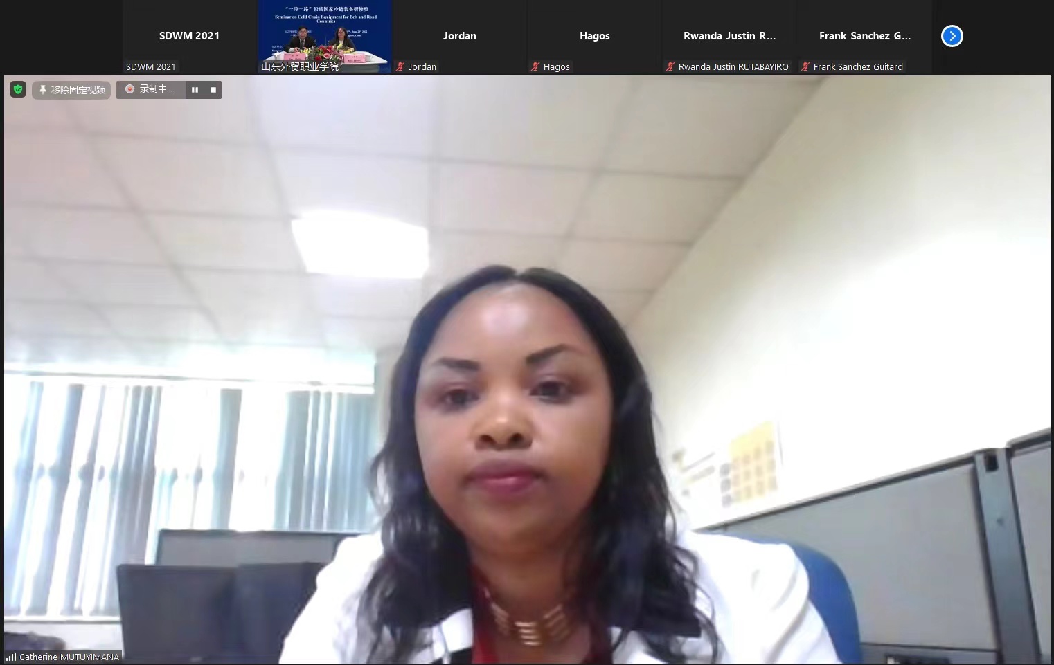 6月15日,由商务部主办,伟德承办的“一带一路”沿线国家冷链装备研修班举行线上开班仪式,副院长高成出席仪式并致辞,来自卢旺达发展署的凯瑟琳·穆图伊玛纳代表研修班学员发言。