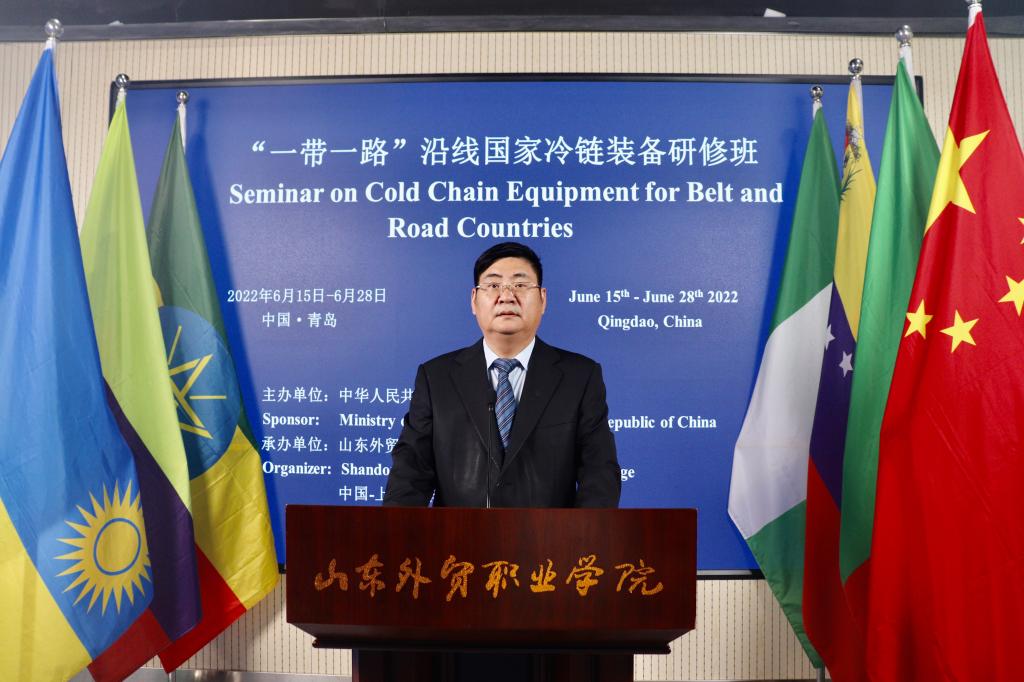 高成在致辞中介绍了山东省冷链装备行业的发展现状和本期研修班的安排。他指出,冷链装备以及冷链物流对于支撑山东农业现代化发展,扩大高品质市场供给具有重要意义。山东从事农产品冷链物流业务的规模企业逐渐增多,网络化、标准化、规模化的发展态势逐步形成。他表示,学院将充分利用国内高校的师资和平台资源,促进山东省与各国开展冷链装备合作,进一步搭建在经贸、工业制造等多领域的合作平台。