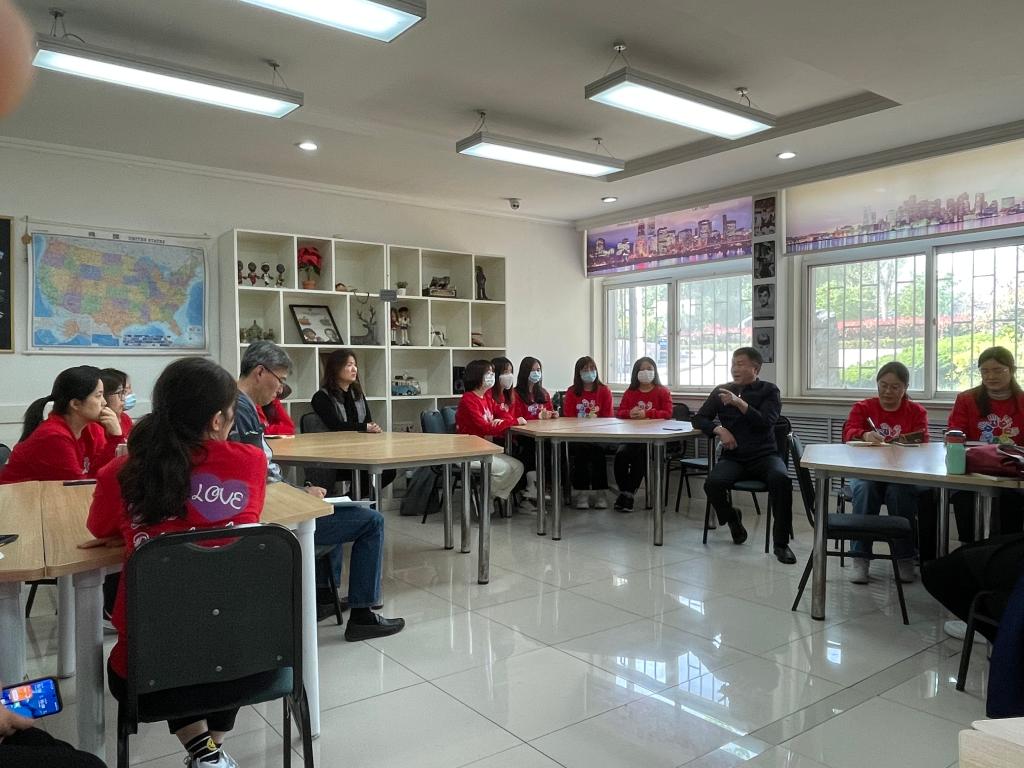 随后,刁建东询问了部门目前的教学和科研工作情况。他指出,公共英语课与各专业有机结合是英语教学改革与发展的新方向,是提升公共英语教学实效的必由之路。老师们要转变思想,积极探索、认真研究任课班级的专业特点,将公共英语课与专业结合起来,改革教学模式和教学内容,开发新教材、做好科研立项。针对公共课资源少、科研难的问题,他建议老师们要开拓思路,积极争取,并以援外培训项目申报作为类比,为大家厘清科研立项基本规律、方法和申报书的写作逻辑和技巧。最后,他鼓励大家不忘初心、牢记使命,努力做好教育教学各项工作。