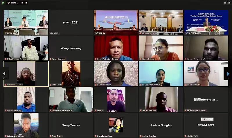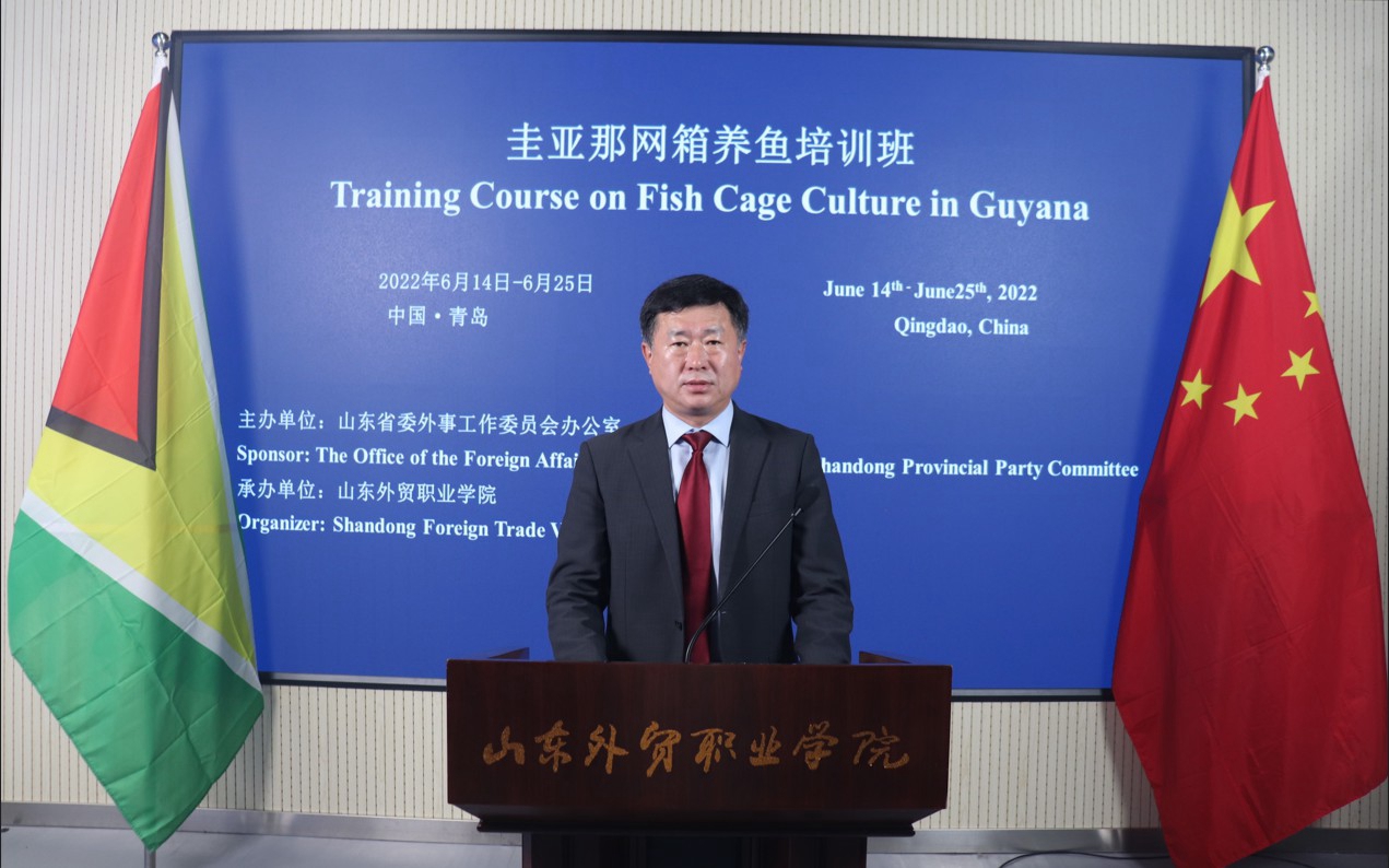 近日,在山东省委外办和济南市外办支持下,由中国-加勒比发展中心主办,伟德承办的圭亚那网箱养鱼培训班举行开班仪式。中国驻圭亚那大使郭海燕、圭农业部总司长拉姆拉吉、渔业司司长罗伯茨,山东省委外办副主任陈白薇,济南市外办主任、中国-加勒比发展中心主任刘瑞玲,伟德院长刁建东出席并致辞。