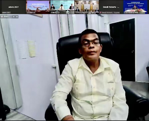 刁建东介绍了学院与各高校、科研机构、企业合作资源,援外培训总体情况及本期培训班的教学安排。他表示目前圭亚那农业部正在调整水产养殖战略(2021-2026年),并培训相 关部门官员和渔民,希望本次培训能够对圭亚那网箱养殖技术提供一些帮助,造福圭人民。
