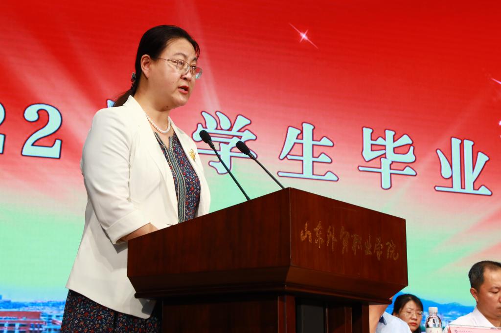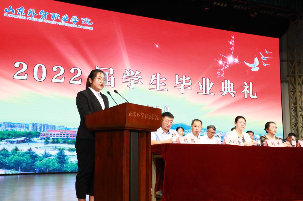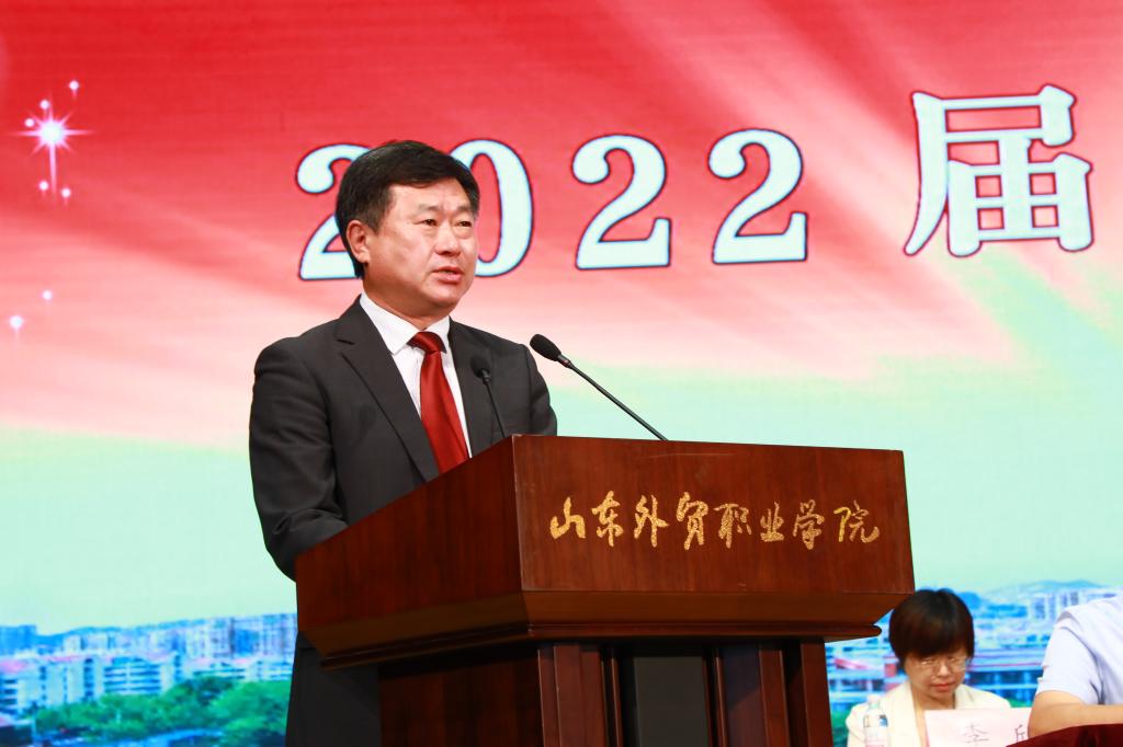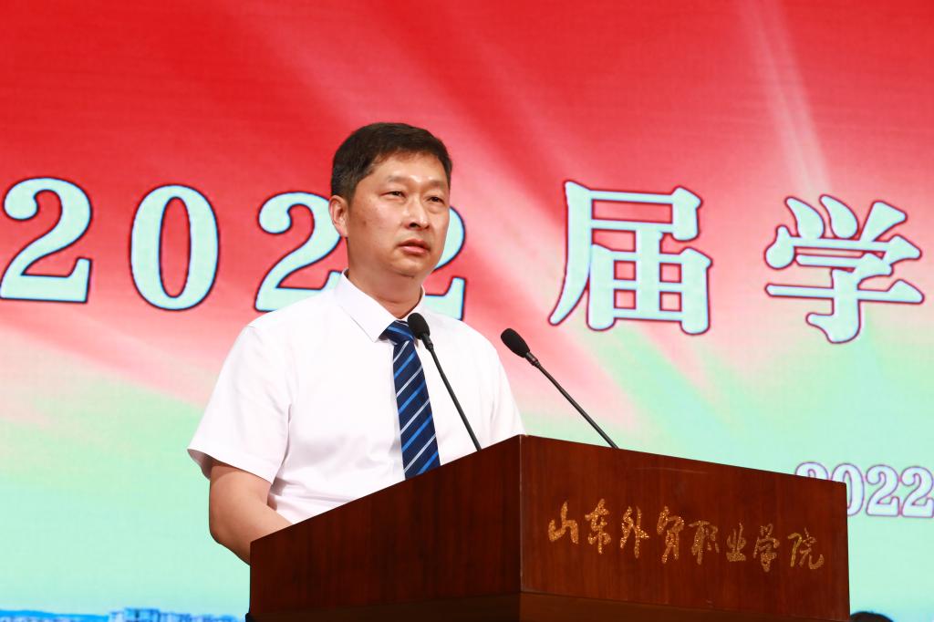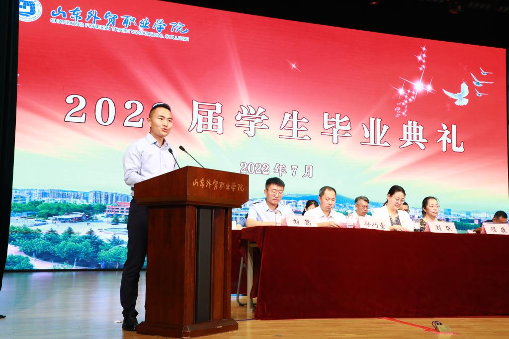 6月26日上午,学院2022年毕业典礼在文体中心举行。党委书记林凌家,院长刁建东,党委副书记黄维,纪委书记唐长臣,副院长程巍、谷现海、刘珉,校友代表2010届国际贸易实务专业毕业生、青岛三格建筑科技有限公司总经理翟存仓,相关部门、各系负责人,辅导员代表及2022届毕业生代表500余人参加典礼。典礼由黄维主持。