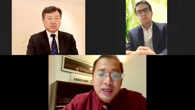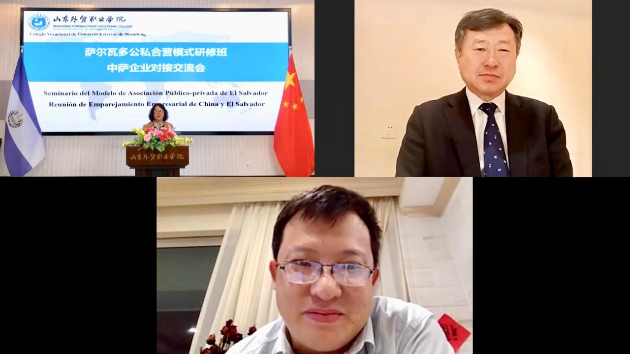 3月20日上午, 萨尔瓦多公私合营模式研修班学员与中国企业对接会在伟德图书馆4楼会议室和线上Zoom平台同时举行。中国驻萨尔瓦多使馆经商处参赞姚明、伟德院长刁建东参加对接会。萨尔瓦多外交部、公共工程部、经济部的29名研修班学员与青建集团、山东高速集团、中国电信集团、青岛鑫光正钢结构股份有限公司、金巴赫物流、港捷国际货运等企业代表进行了对接活动。