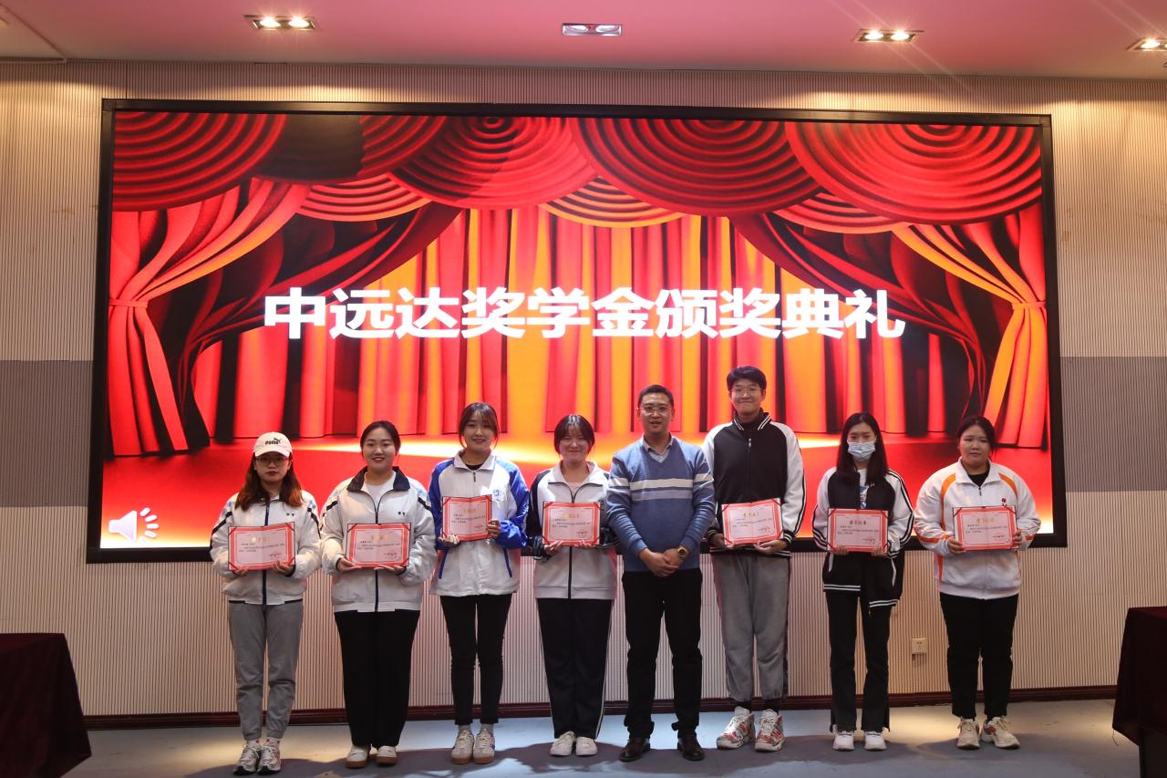 会上唐晓艳宣读了第一届中远达奖学金获奖名单,段曜炜为获得首届中远达奖学金的38名同学颁奖。