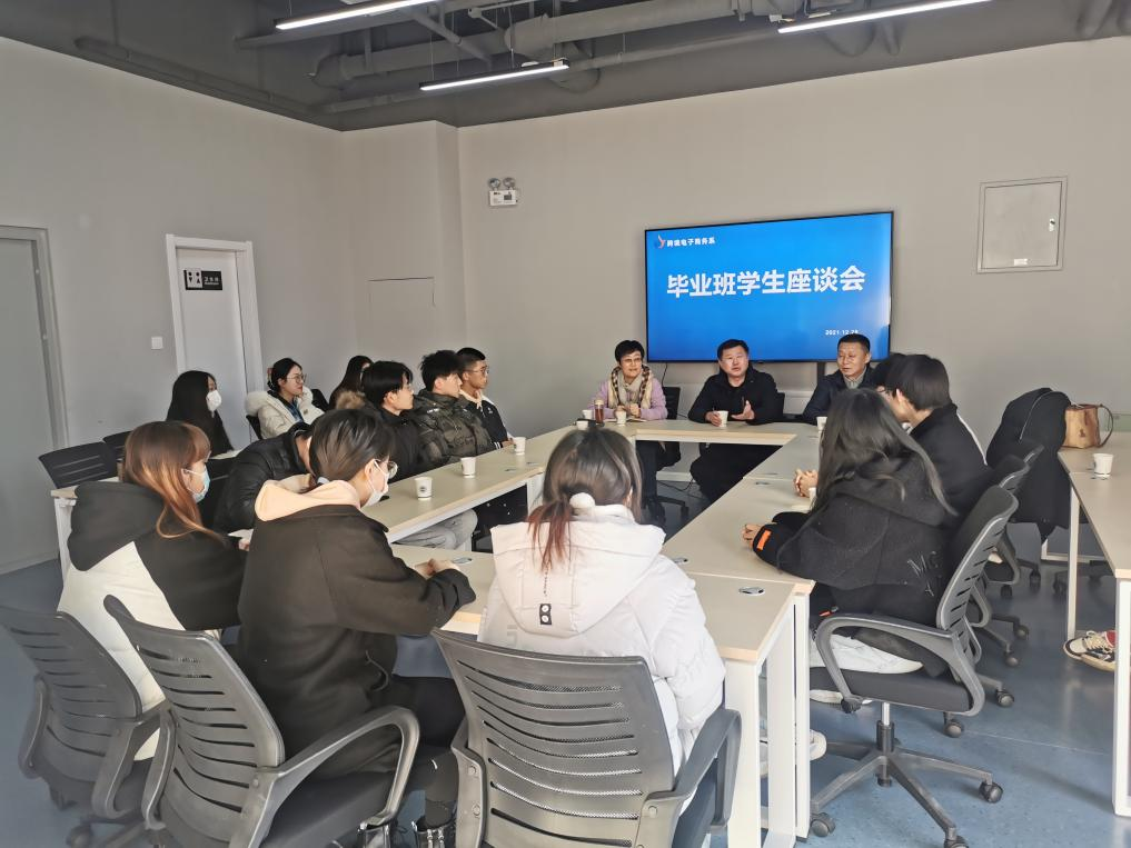 12月28日,跨境电子商务系在山东省跨境电商公共实训基地举行毕业班学生座谈会。院长刁建东,跨境电子商务系党总支书记李军,副主任仇利克、张宝龙,毕业班辅导员房姗及毕业生代表参加了会议。