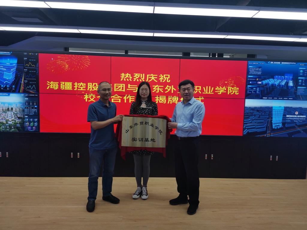 在青岛海疆智远信息科技有限公司,刁建东与董事长姜明、副总经理万志波、副总经理李永强等进行了深入交流,了解了企业发展历程和主营业务,看望了伟德今年实习就业的7名毕业生。校企双方签订了校企合作协议,举行了校外实训基地揭牌仪式。