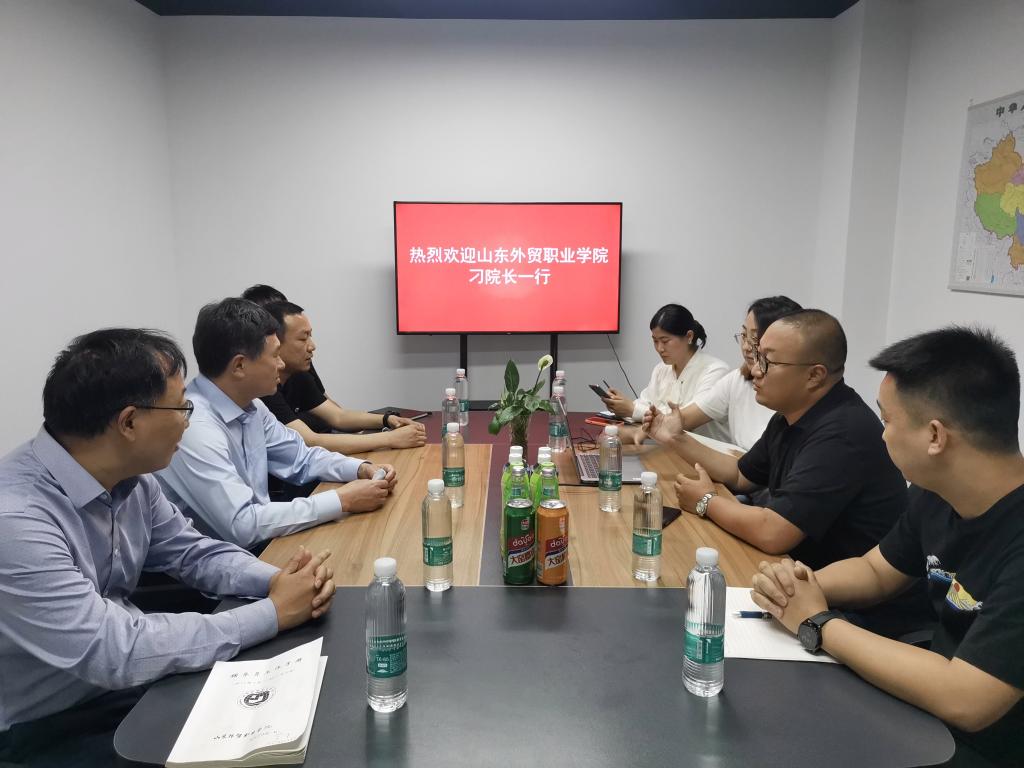 在山东后浪之光创新发展有限公司,刁建东与总经理陈百涵在行业发展与人才需求、人才培养与教学改革等方面进行了交流,并观看了实习就业学生的影视作品,双方签署了校企合作协议。