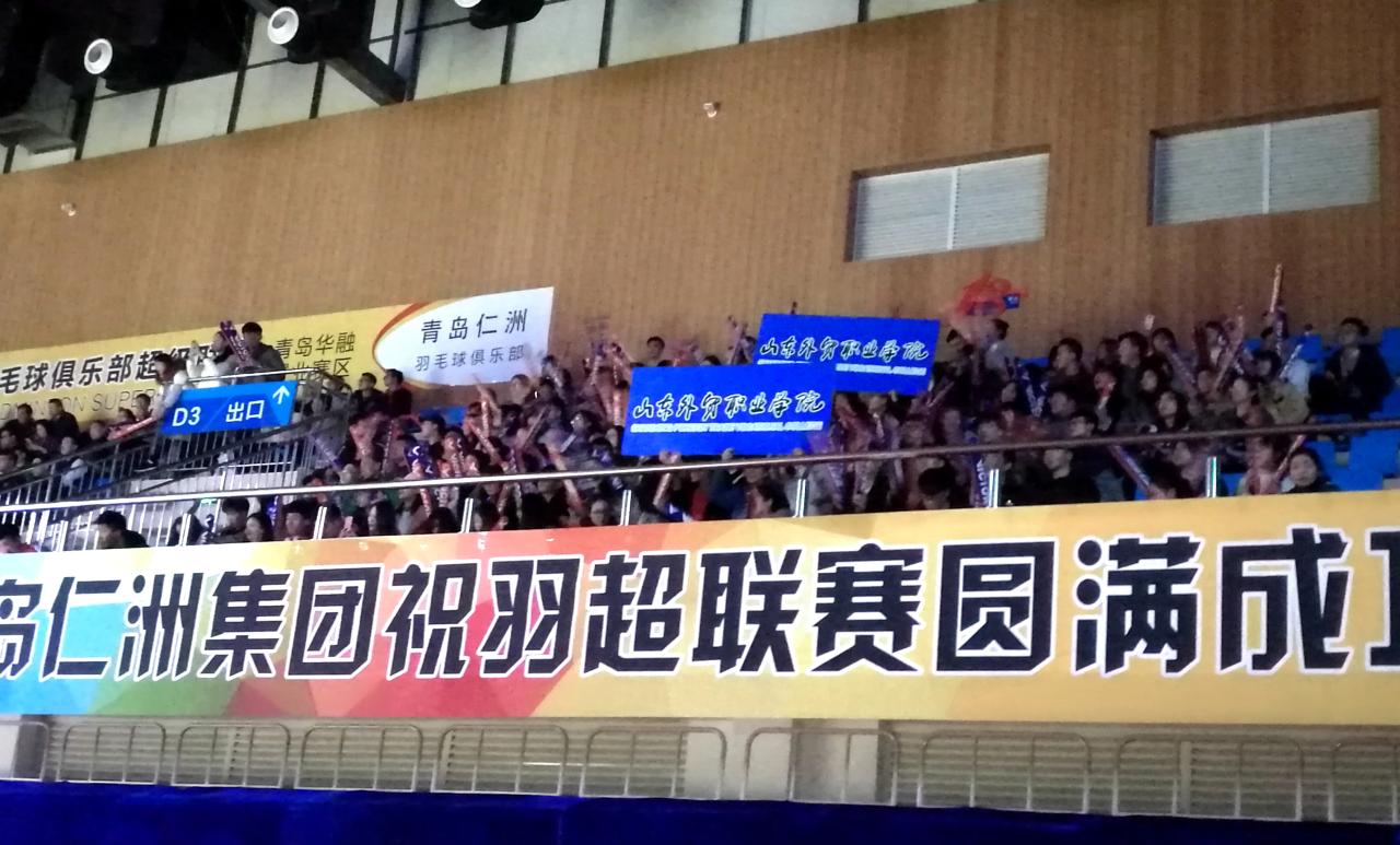 1月6日,2017-2018“羽超”联赛第11轮比赛在青岛城阳体育馆举行,本次比赛青岛“仁洲”队主场对战湖南“华莱”队。伟德由曲振琳老师带队组织师生300余人前往助阵,院长刁建东应邀观看本次比赛,应邀出席的还有山东省人大常委会副主任、山东省羽毛球运动协会名誉主席夏耕,山东省体育局党组成员、副局长、省羽毛球运动协会副主席乔云萍,青岛市委常委、教育局局长邓云峰。