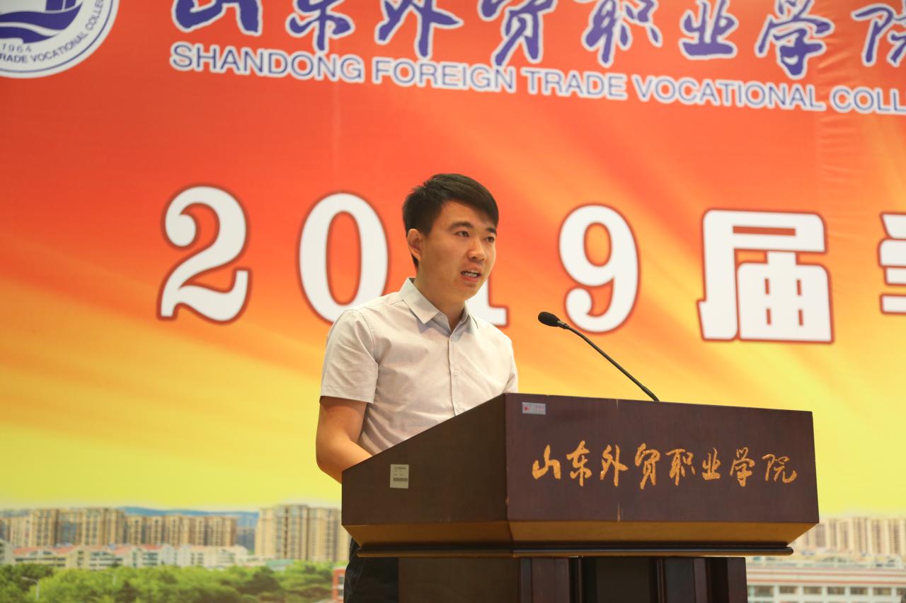 国际运输与物流系教师杨超代表教师发言。2009届毕业生、青岛世润供应链有限总经理李修治代表校友发言。毕业生代表经济管理系刘玉娟、国际贸易系王紫瑶分别发言。
