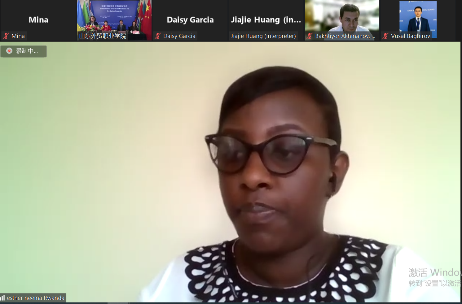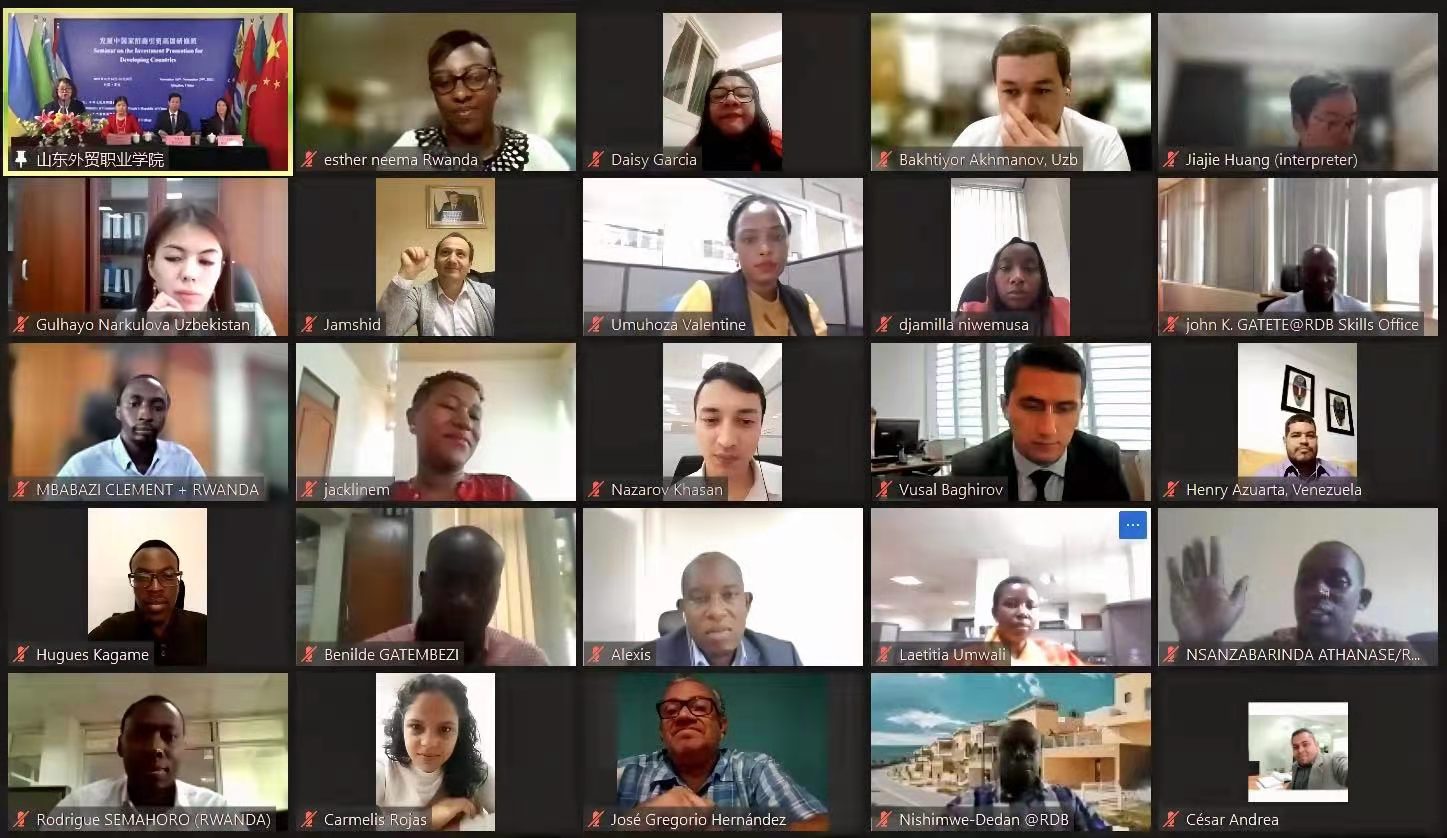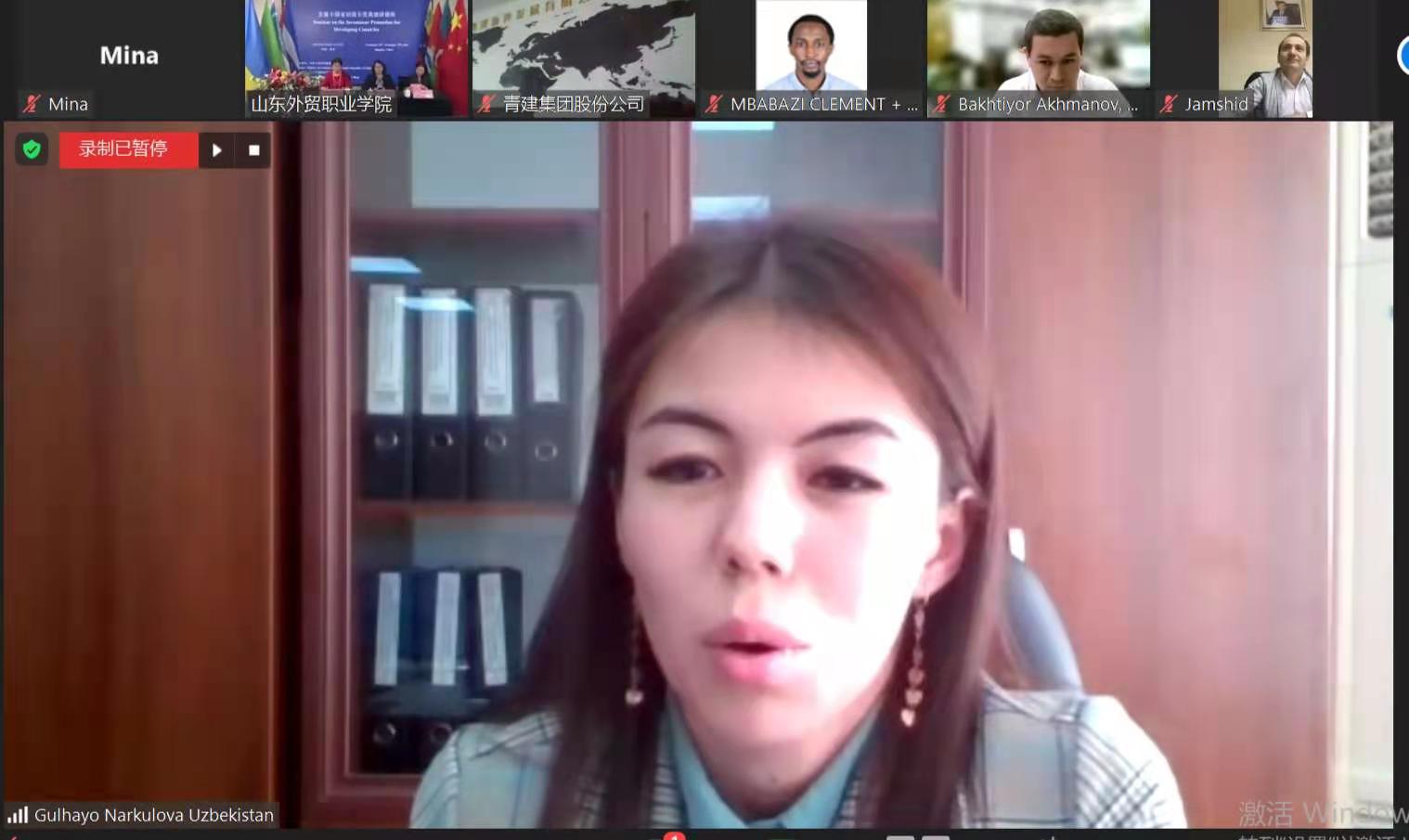 11月29日下午,发展中国家招商引资高级研修班与中国企业对接会在线上Zoom平台举行。来自阿塞拜疆、古巴、基里巴斯、卢旺达、乌兹别克斯坦、委内瑞拉、赞比亚等7个国家的92名官员与青建集团、海尔集团、青岛物流网、青岛鑫光正集团等企业代表参加了对接活动。伟德国际官员研修学院院长王保红主持会议。