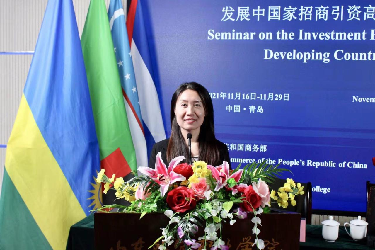 会上,青建海外发展有限公司市场部总经理石晓磊、海尔集团海永顺创新科技有限公司总经理刘伟、青岛物流网总编贾军玲、青岛鑫光正集团青岛三格建筑科技有限公司市场部经理王宏玲分别向各国学员们介绍了本公司的基本情况和国外业务开展状况,并表达了前往各发展中国家进行投资和拓展业务的意愿。研修班学员代表向与会企业介绍了乌兹别克斯坦、卢旺达及委内瑞拉等国的投资环境、优惠政策以及招商引资优势领域等情况。学员和企业就下一步合作进行了交流。