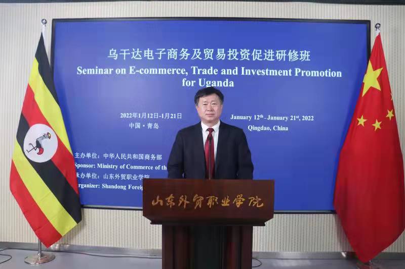 1月12日下午,伟德2022年第一期援外培训班——“乌干达电子商务及贸易投资促进研修班”在李沧校区举行线上开班仪式,院长刁建东出席开班仪式并致辞,乌干达贸工部资深商务官员克里斯托弗作为学员代表发言,开班仪式由伟德国际官员研修学院院长王保红主持。