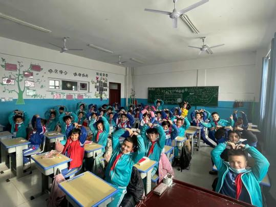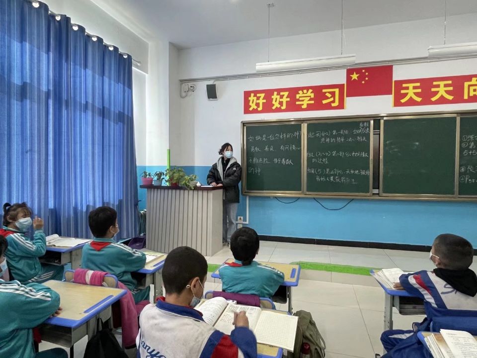 培训结束后,王雨欣开启了志愿服务的第一站——岳普湖乡中心小学。这里的教学条件相比山东省内要简朴许多,老师办公的环境相对更加简陋,但是学生的学习场所却是干净明亮,真正体现出“再苦啥不能苦孩子,再穷不能穷教育”。