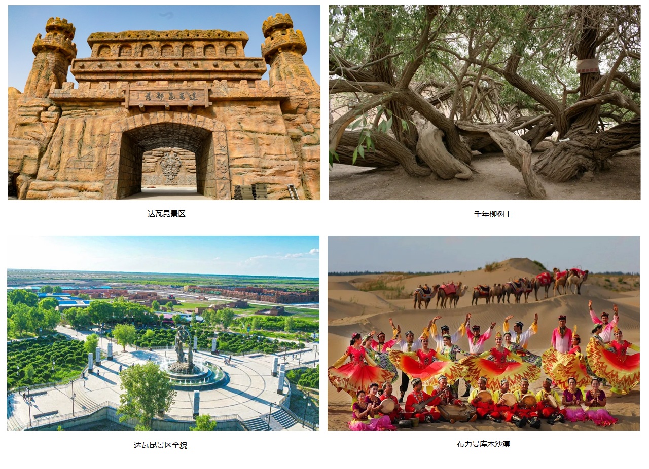 岳普湖县境内有距喀什市最近的国家“AAAA”级沙漠旅游景区,是“中国沙漠风光旅游之乡”。以达瓦昆沙漠风景区为中心,辐射有千年胡杨王和柳树王、古墓群,塔吉克民俗风情园等5个旅游景点,素有喀什旅游“后花园”之称。
