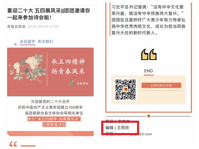 2022年3月,根据工作需要,王雨欣从岳普湖县第三小学调到团县委工作,主要负责团县委微信公众号的运营与维护以及相关的志愿服务工作。
