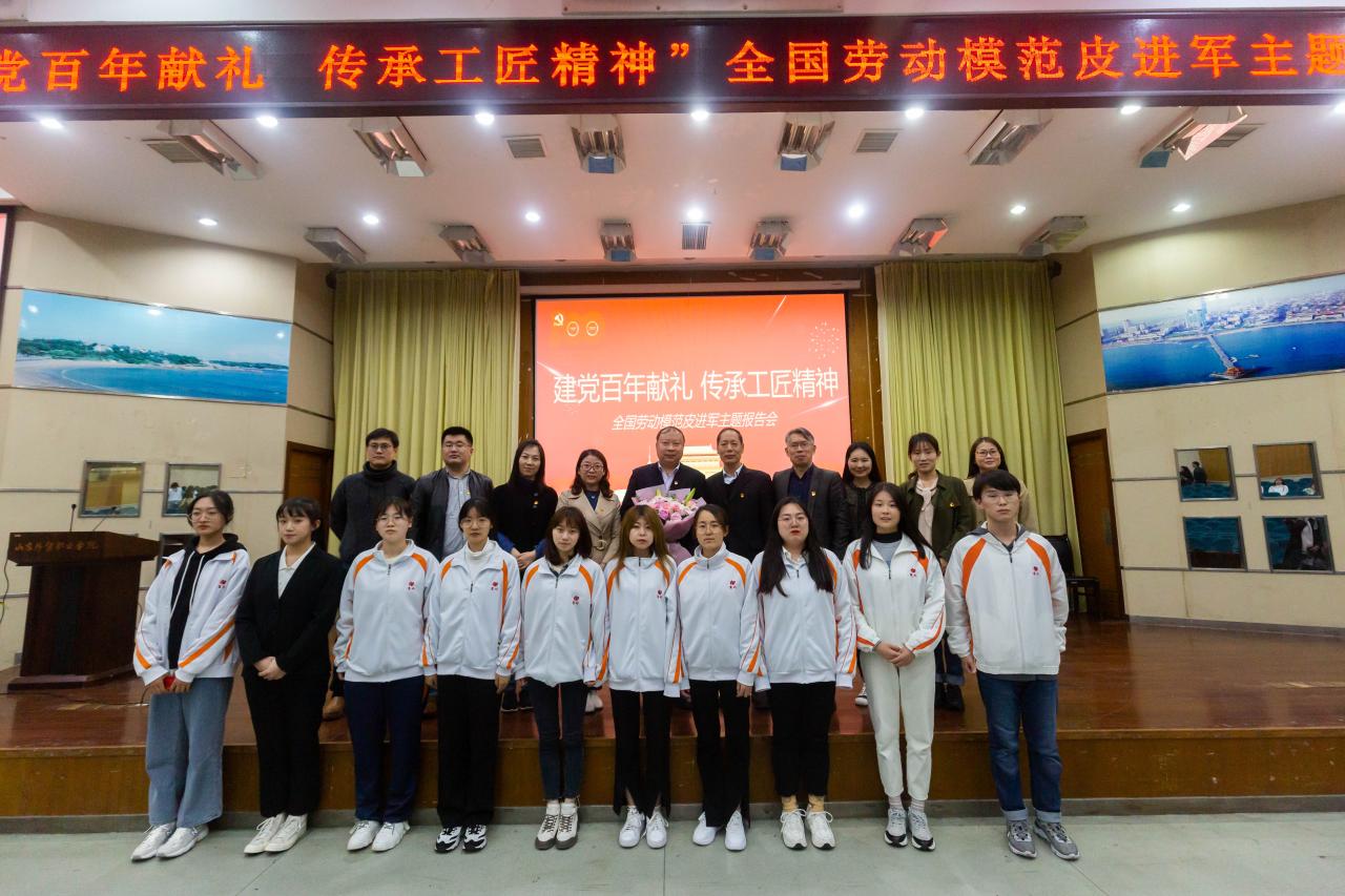 林凌家作总结讲话,他对皮进军同志百忙之中莅临学院做主题报告表示感谢,他指出,当前学院正在开展党史学习教育,皮进军同志的报告恰逢其时,给学院师生上了一堂生动的主题教育课。皮进军同志彰显出既有工人阶级爱岗敬业、甘于奉献的传统美德,又有新的时代高素质技能人才精益求精、敢于创新的显著特征。他从一名普通工人成长为港口装卸作业的技术能手,成长为党的十八大、十九大代表,全国劳动模范的奋斗历程值得全院师生认真学习。林凌家强调,全院师生要认真学习领会贯彻落实习近平总书记对职业教育工作做出的重要指示,以皮进军同志为榜样,在今后的工作学习中坚定理想信念,志存高远,脚踏实地,勇于担当重任,努力践行劳模精神,学习皮进军同志对待工作一丝不苟、精益求精,对待事业满腔热忱、创新拼搏的精神,不断提高专业能力和水平,培养更多专业水平高、综合能力强的技能型人才,体现学院的使命和担当,以更加昂扬的姿态迎接建党100周年。