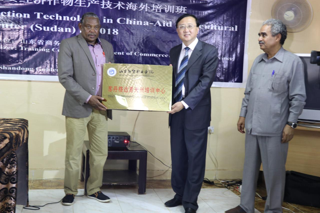 开班仪式上,杨民刚和拜德乐丁·埃尔哈桑为伟德苏丹格达里夫州培训中心揭牌。该中心设在中国援苏丹农业技术示范中心院内,是伟德继苏丹、尼日利亚、埃塞俄比亚、安提瓜和巴布达基地之后的第五个海外培训基地。培训中心的设立,丰富了海外援外培训方式,将为学院境外援外培训提供更多便利,更好服务于学院外向型发展。本期培训班为期30天,将分别在援苏丹农业技术示范中心和马萨德培训中心培训两批四组共200名苏丹农业主管部门官员和技术人员。培训结合苏方实际需要和当地条件,围绕棉花育种技术、向日葵和芝麻种植及病虫害防治技术等方面开展专题讲座,并在我援苏丹农业技术示范中心和拉哈德灌区等地开展实地调研和现场指导。这次培训也是伟德自承担援外培训任务以来开展的第七次境外培训,为贯彻落实国家“一带一路”倡议和“走出去”援外培训积累了丰富经验。