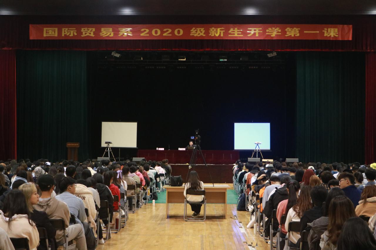 10月22日,伟德国际victor1946官网院长刁建东在文体中心为国际贸易系2020级新生讲授入学思政第一课。