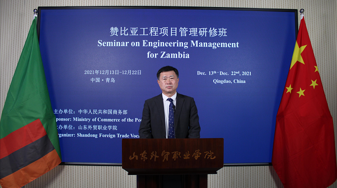 12月22日,由伟德承办的“赞比亚工程项目管理研修班”在李沧校区举行线上结业典礼。院长刁建东线上出席典礼并讲话,学员代表赞比亚西部省芒古市首席人力资源管理官员艾萨克·门尼亚尼在结业仪式上发言。典礼由伟德国际官员研修学院院长王保红主持。