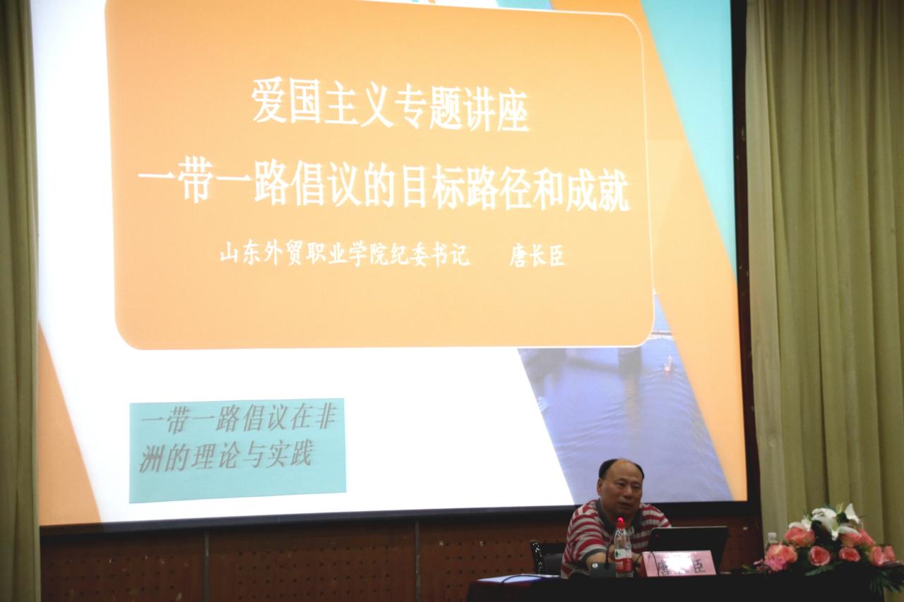 唐长臣从国际化的视野为新生展开课程,为同学们讲述了习近平总书记提出的“一带一路”重大倡议,“一带一路”倡议在非洲、山东省的发展以及学院援外项目为“一带一路”建设作出的贡献,指出了“一带一路”下新青年的使命与担当。他勉励新生放眼未来,认真规划大学学习生涯,珍惜时光,锐意进取,学以致用,回报祖国。