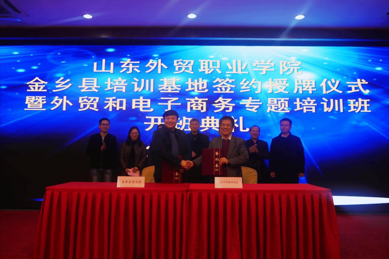 培训基地签约授牌标志着学院与金乡县的合作进一步深化,双方将在外贸企业员工培训、外贸人才共育、教师企业实践等方面加强合作,形成政校企协同共建的产教融合良好局面,同时,助力金乡县外贸稳定向好发展。