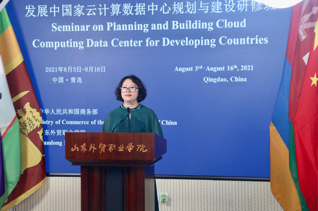 刘珉在致辞中对学院的办学历史、校友企业、援外培训、伟德与“一带一路”国家的教育合作以及本期研修班的培训安排等进行了介绍。刘珉表示,学院将努力为学员做好服务工作,无私分享中国在云计算技术方面的经验,积极搭建多边合作交流平台。