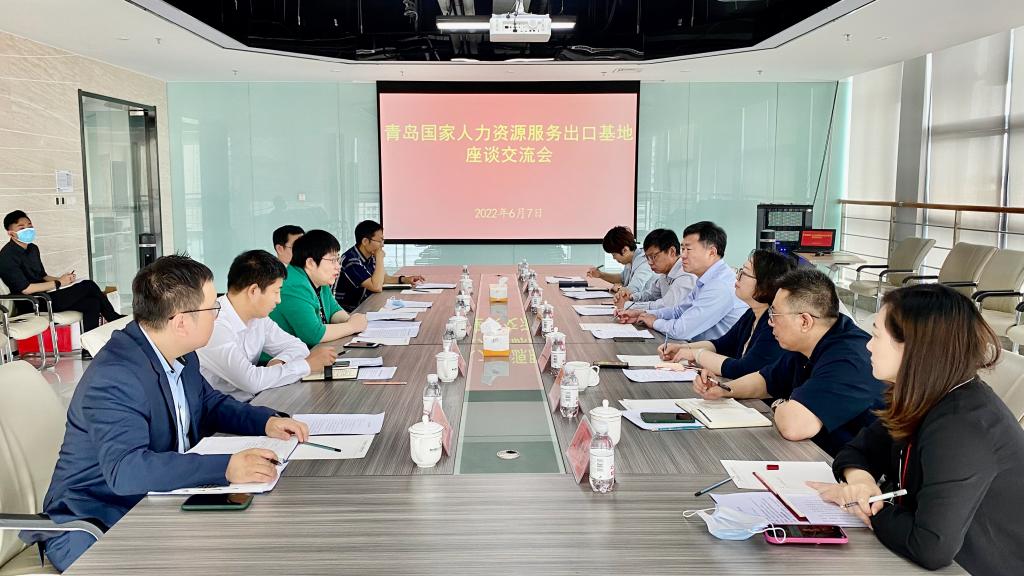 6月7日,应青岛市人社局邀请,院长刁建东一行赴青岛国际人力资源服务产业园参加了青岛国家人力资源服务出口基地座谈交流会。基地负责人市北区人社局局长王萍、青岛市人社局人才开发处及中国青岛国际经济技术合作(集团)有限公司、青建海外发展有限公司、上海外服(青岛)人力资源服务有限公司等有关部门领导及企业代表参加了座谈。
