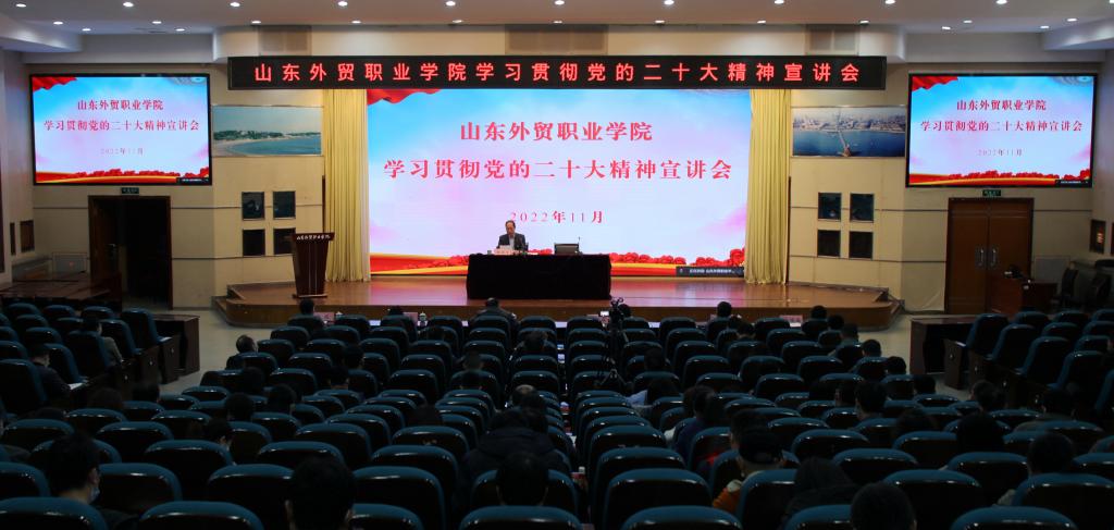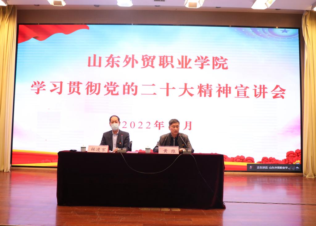 11月17日,学院在图书馆二楼学术报告厅召开学习贯彻党的二十大精神宣讲会,党委书记林凌家作首场专题报告。学院领导、全体中层干部、辅导员及相关部门同志参加会议,泰安校区有关同志线上同步参会。党委副书记黄维主持会议并对学院党的二十大精神宣讲工作作了安排。