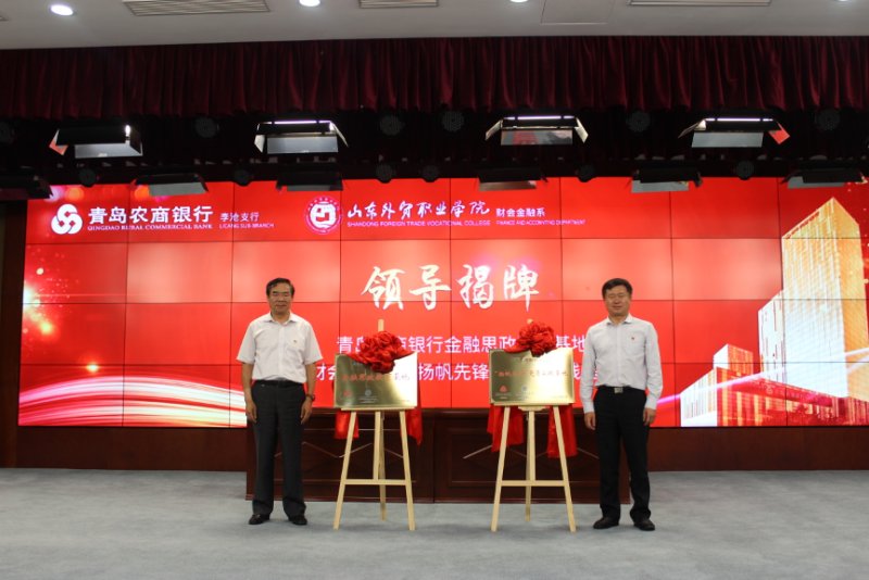在全省积极学习贯彻《教育部 山东省人民政府关于整省推进提质培优建设职业教育创新发展高地的意见》(鲁政发〔2020〕3号)之际,6月24日下午,伟德财会金融系与青岛农商银行在该行总部举行党建共建签约及教育实践基地揭牌仪式。青岛农商银行行长刘宗波,党委副书记刘承林,党群工作部总经理齐海峰,李沧支行党总支书记、行长于刚,李沧支行第四党支部书记张世军,伟德院长刁建东,财务审计处副处长张潇天,财会金融系党总支书记孙茂峰、主任卢吉强、教工一支部书记孙中平等参加了会议。