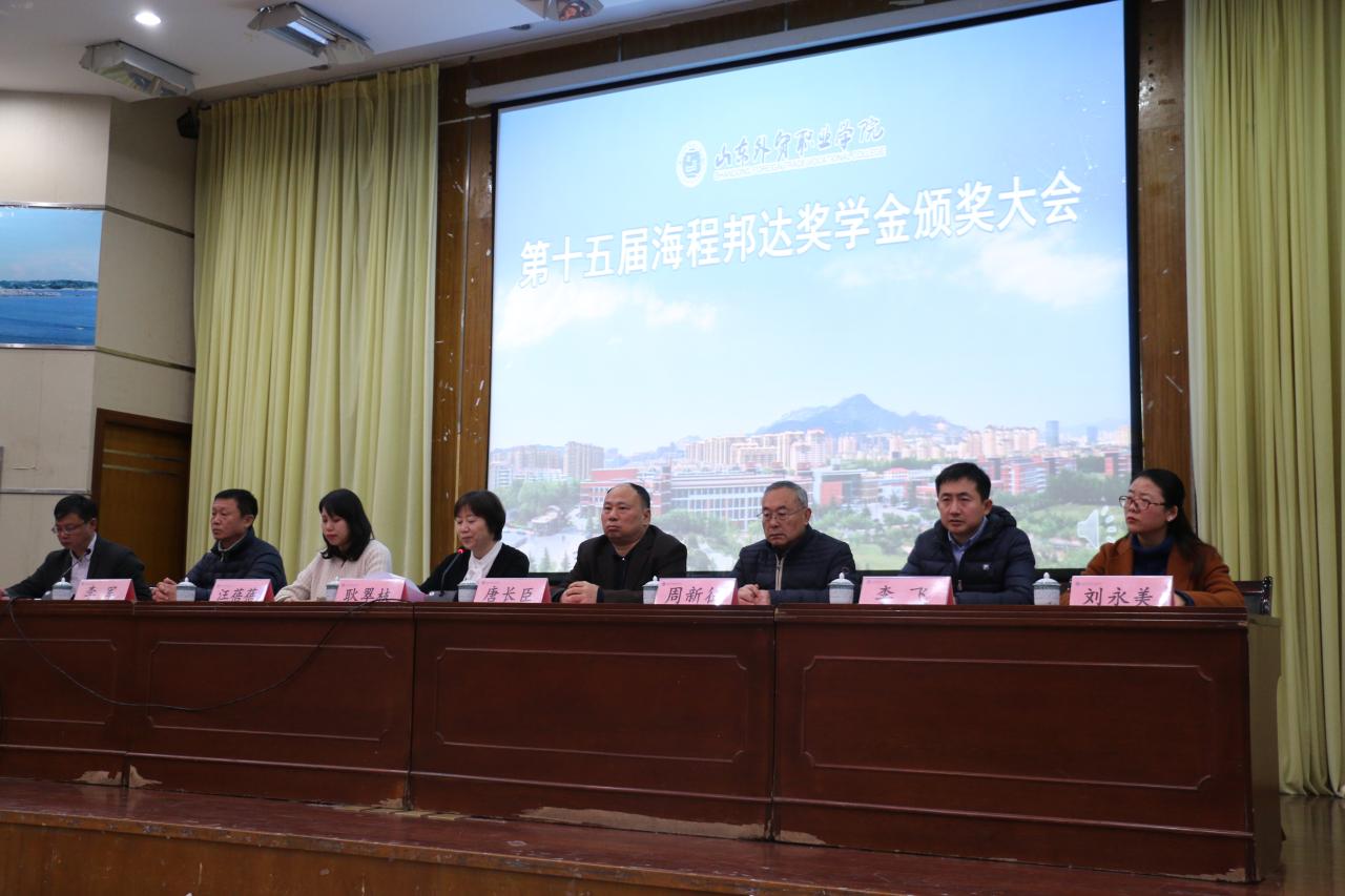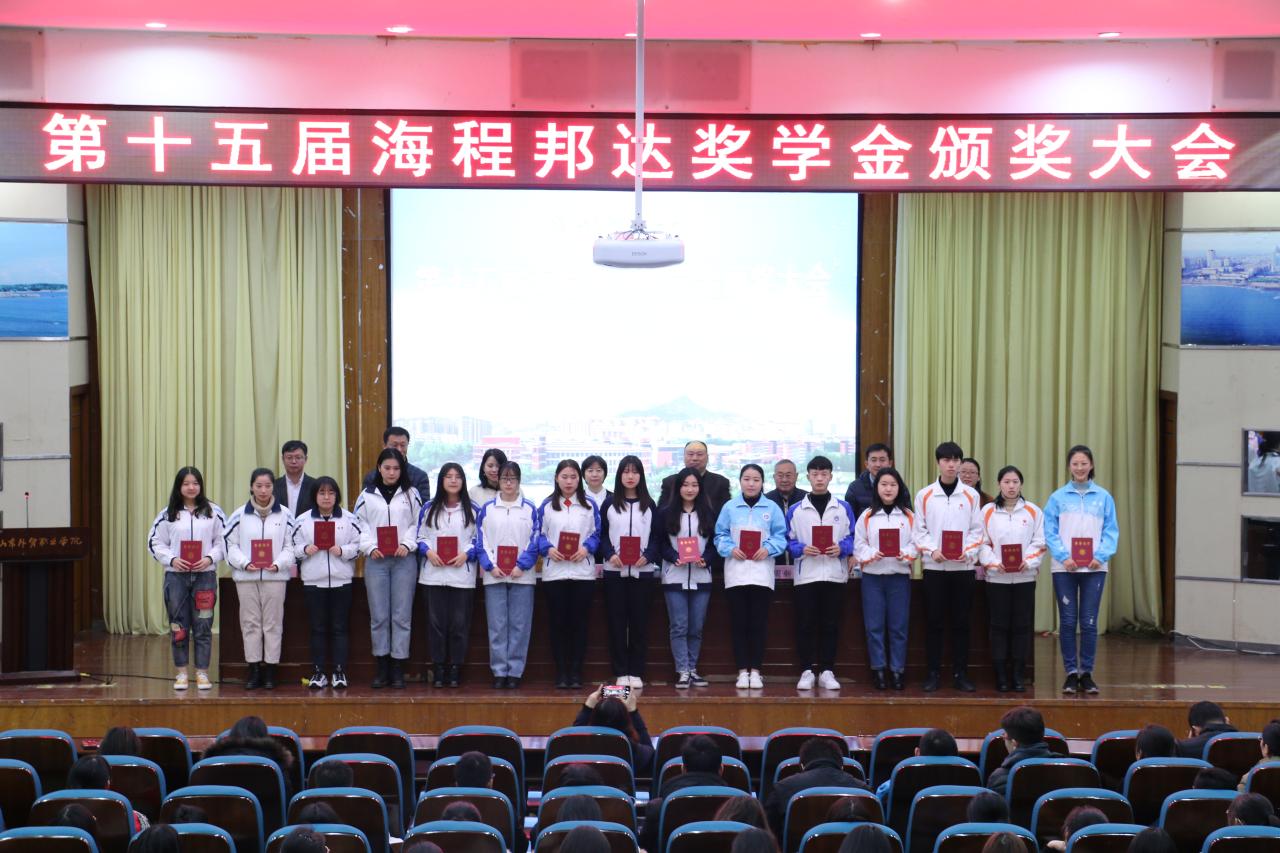 12月17日下午,学院在李沧校区学术报告厅举行了第十五届海程邦达奖学金颁奖大会。海程邦达国际物流有限公司人才发展部总经理耿翠枝、人才发展部培训总经理汪蓓蓓、学院纪委书记唐长臣、学生工作处负责人、各系党总支书记、学工办主任、辅导员代表和学生代表400余人参加颁奖大会。
