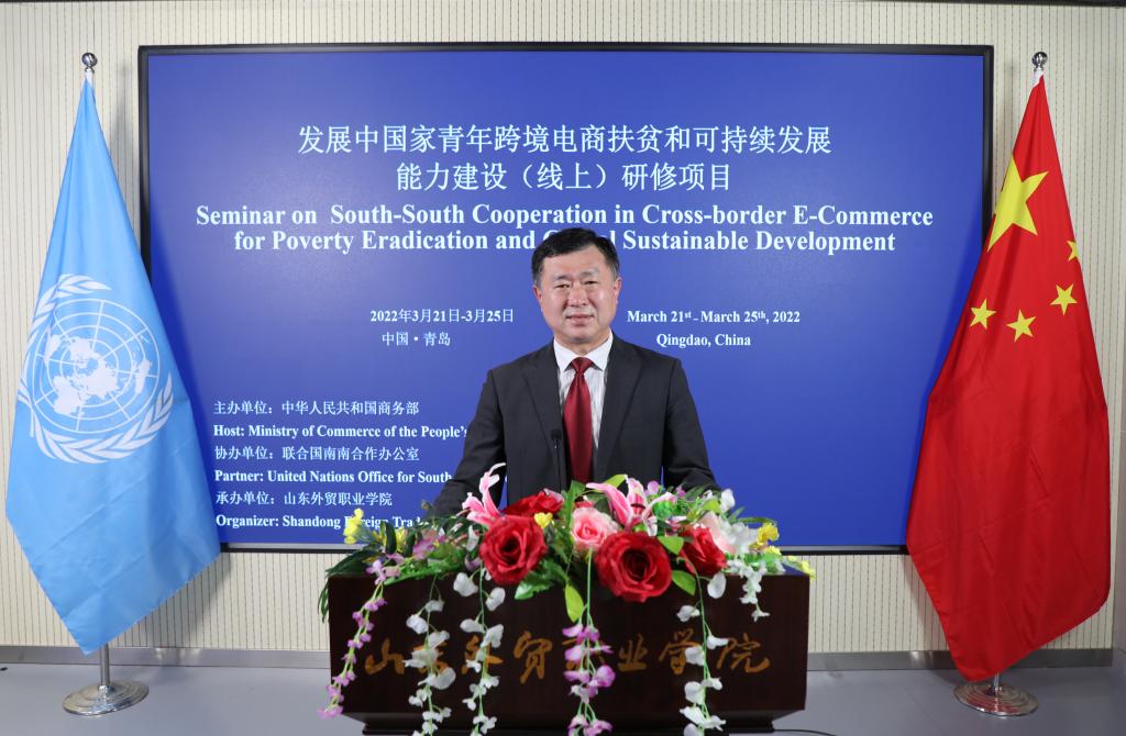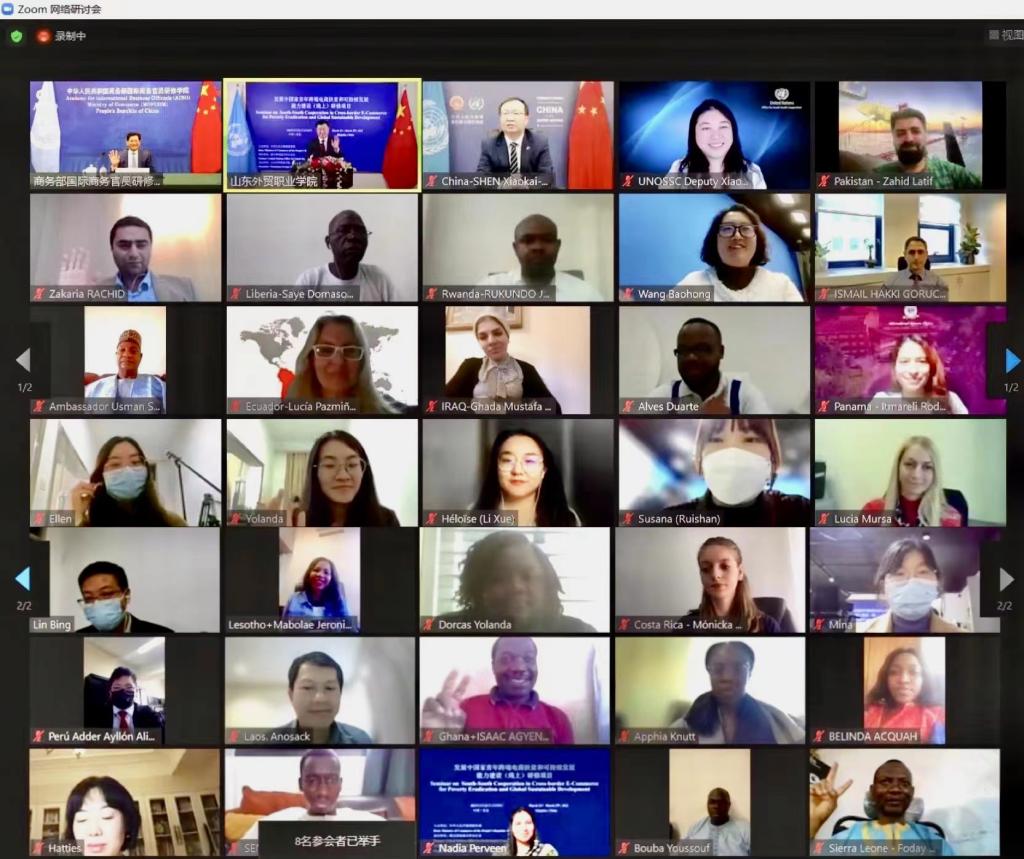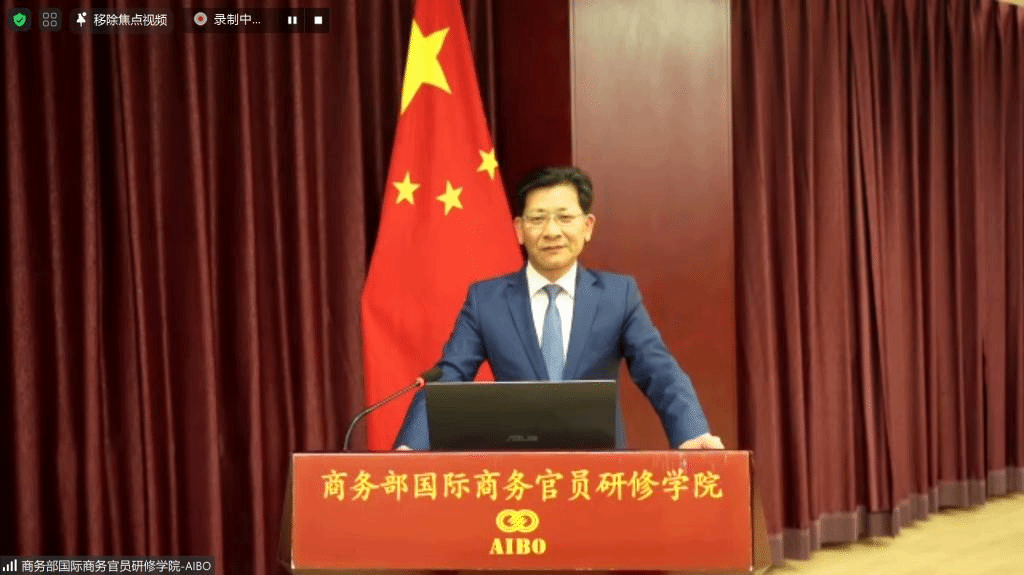 中国商务部国际商务官员研修学院副院长陈润云,联合国南南合作办公室副主任王晓军,中国常驻联合国代表团公使衔参赞沈晓凯出席结业仪式并分别致辞,共同以在线视频的方式为学员颁发结业证书。