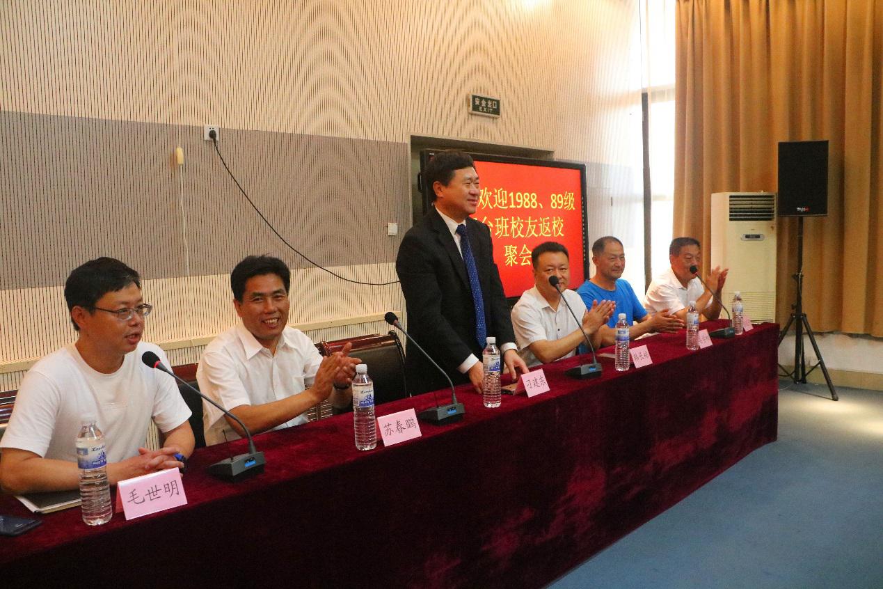 座谈会上,刁建东代表学院致词,他对1988、89级烟台班校友的到来表达了期待的心情和热烈的欢迎,对学院1988、89级部分班级安排在烟台就读的背景做了说明,为校友们介绍了学院几十来年的发展变化和重大历史变迁,对学院的特色发展、办学规模、办学条件建设、师资队伍建设、教育、教学水平、社会服务、援外培训、招生就业、综合办学实力等情况以及学院未来的发展规划蓝图做了重点介绍。