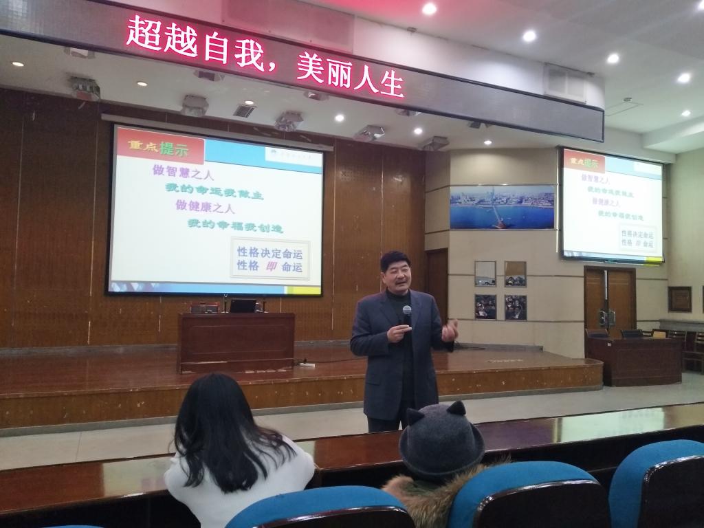 宋广文以“超越自我,美丽人生——大学生的心灵成长与生命智慧”为题,用深入浅出、风趣幽默的语言介绍了维护心理健康的方法与途径,向学生提供了实用的技巧与建议。他结合自己在教学和工作中的经验,围绕大学生的生活、学习、心理及情感等问题展开了讲解,精准的分析了人与社会、文化之间的关系,针对大学生适应社会新发展、大学新环境、新人际关系等问题提出了独到的见解,告诫同学们转变才能适应,适应才能发展。