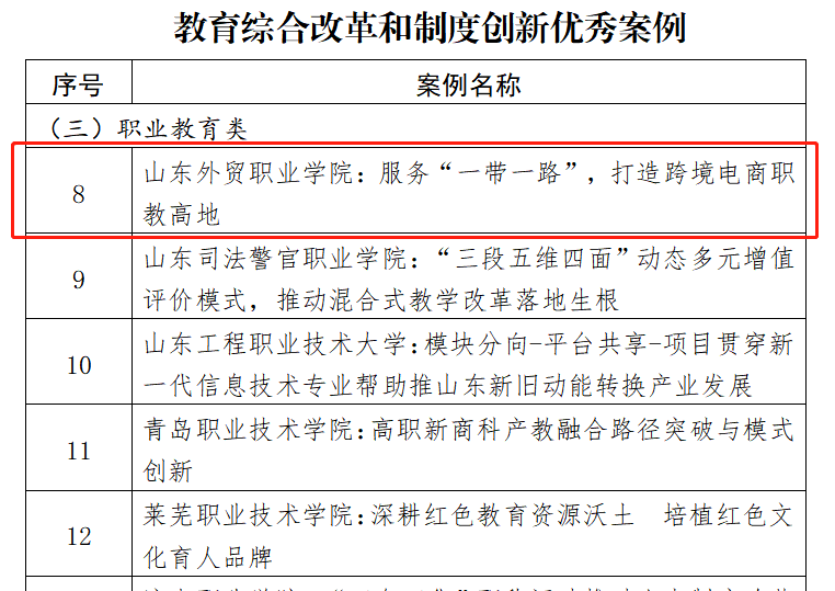 近日,山东省教育厅发布了2022年度教育综合改革和制度创新优秀案例评选结果,伟德推荐的《服务“一带一路”,打造跨境电商职教高地》案例成功入选。