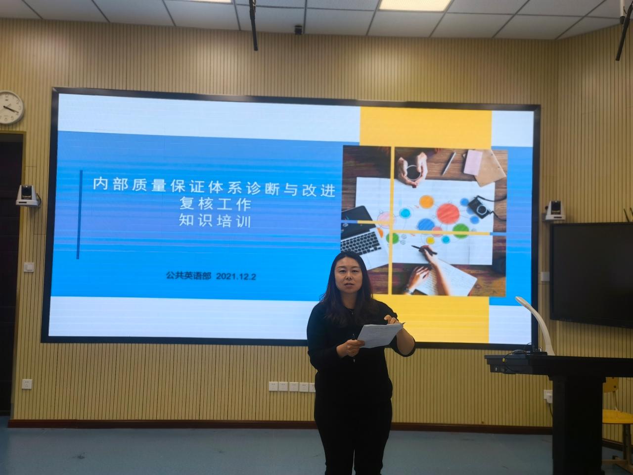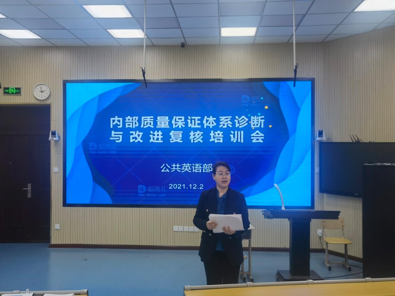 为配合学院内部质量保证体系诊断与改进复核工作,进一步提升部门全体教师诊改质量,公共英语部于12月2日下午在1号楼第一阶梯教室就诊改复核工作再次组织了培训会。学院副院长刘珉出席并讲话,公共英语部主任崔卫主持,部门全体教师参会。