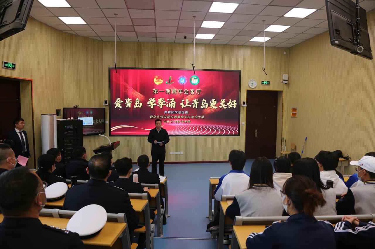 为进一步学习和弘扬英模精神,树立道路交通安全意识,普及交通法律法规知识,在第十个“全国交通安全日”来临之际,12月3日上午伟德与青岛市公安局交通警察支队李沧大队(以下简称“交警李沧大队”)联合举办第一期青年会客厅“‘爱青岛,学李涌,让青岛更美好’主题宣讲活动”。李沧区团委书记刘殿帅,干事张宝福,交警李沧大队党总支副书记、教导员曲海青,政治协理员闫可猛,学院副院长谷现海,宣传统战部部长武传伟,学生工作处处长孙巧奎,团委书记刘嵩以及学院部分系团总支书记,交警李沧大队交警,学生代表参加活动。